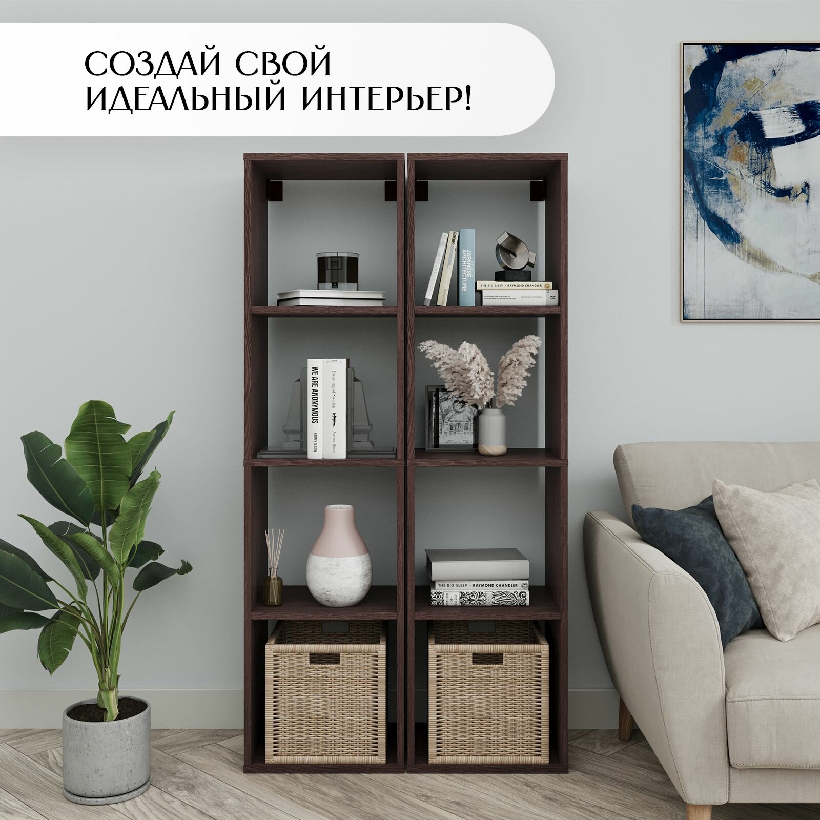 Купить Стеллаж деревянный для игрушек, для книг книжный Quattro 4 секции Венге