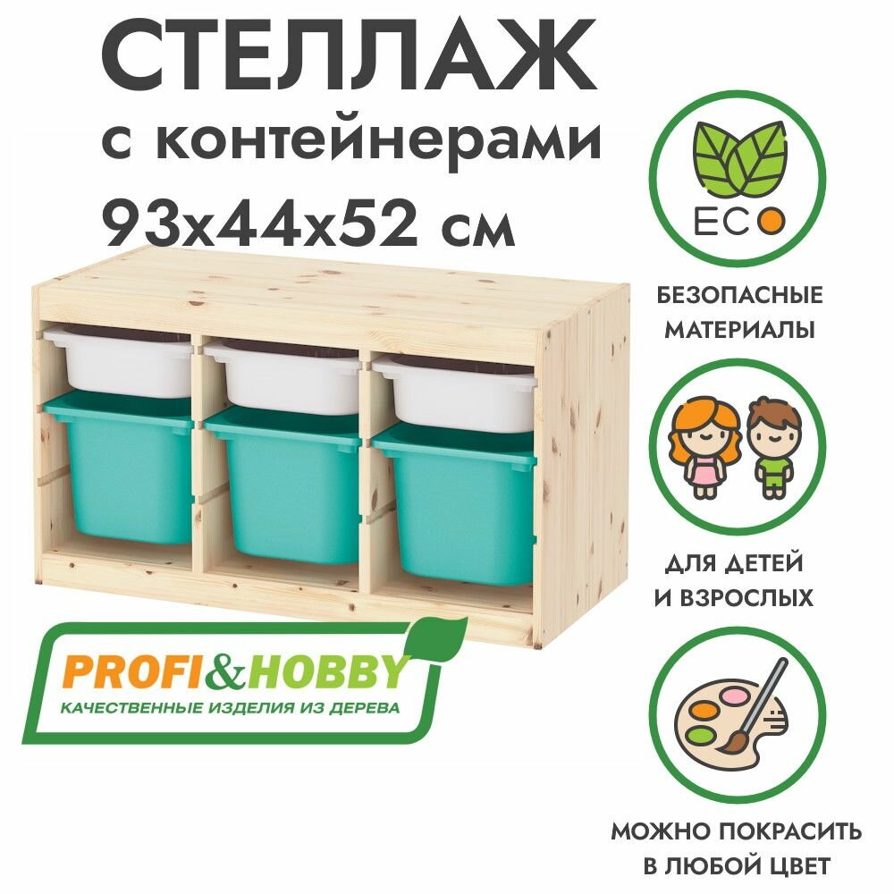 СохранитьСтеллаж труфаст горизонтальный тройной 93х44х52 см с белыми (3 шт) и бирюзовыми (3 шт) контейнерами интересное:
