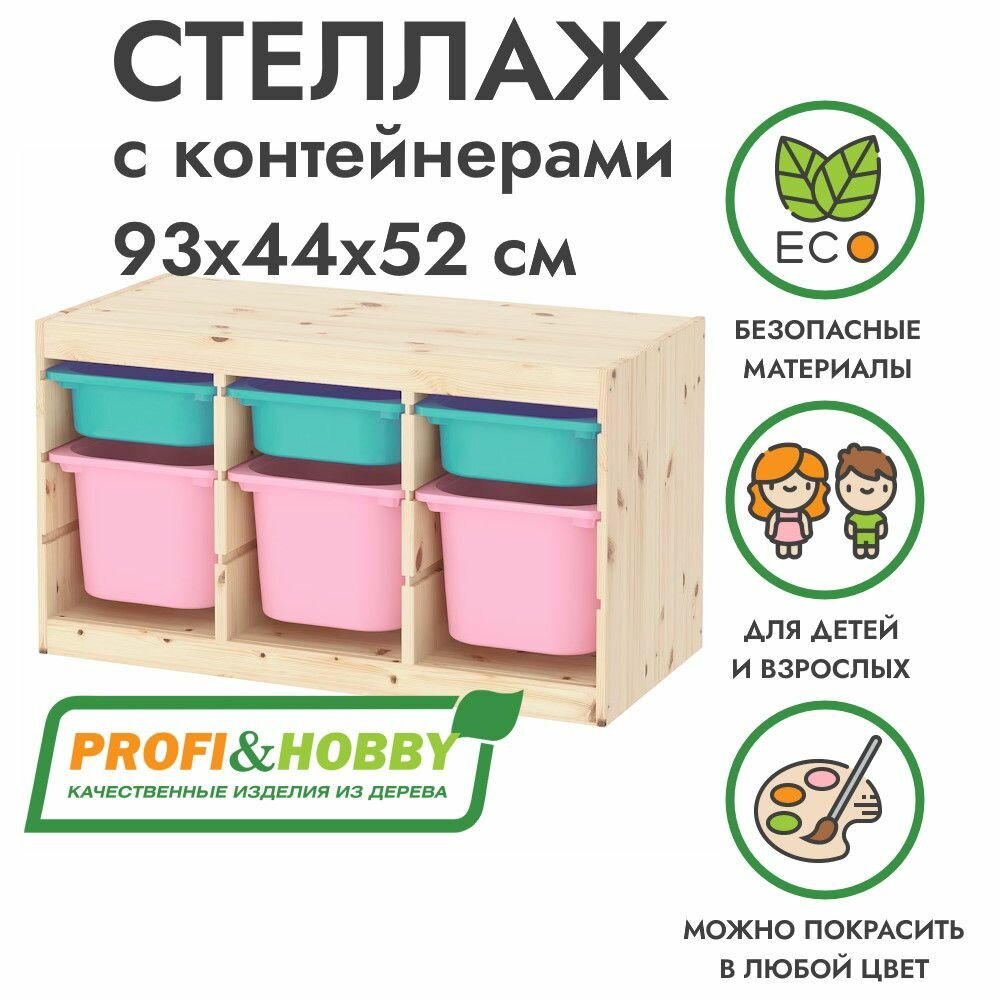 СохранитьСтеллаж труфаст горизонтальный тройной 93х44х52 см с бирюзовыми (3 шт) и розовыми (З шт) контейнерами интересное: