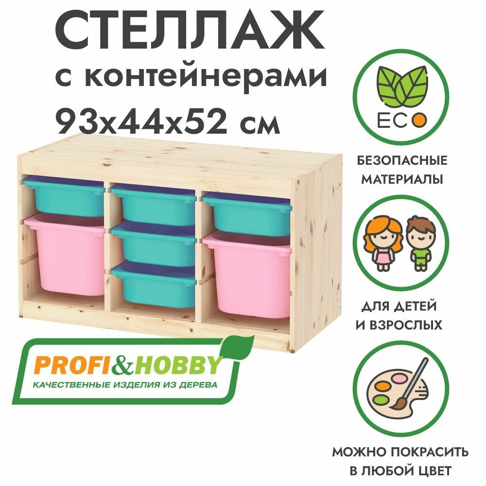 СохранитьСтеллаж труфаст горизонтальный тройной 93х44х52 см с бирюзовыми (5 шт) и розовыми (2 шт) контейнерами интересное: