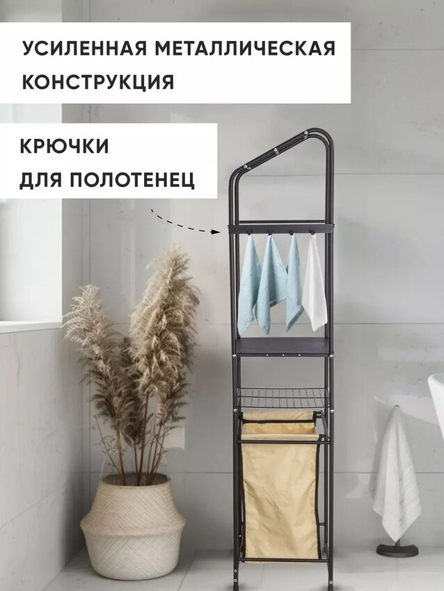 Стеллаж металлический с корзиной для белья 45 л SUPRA SC-L14002, 160х38х35 см интересное: