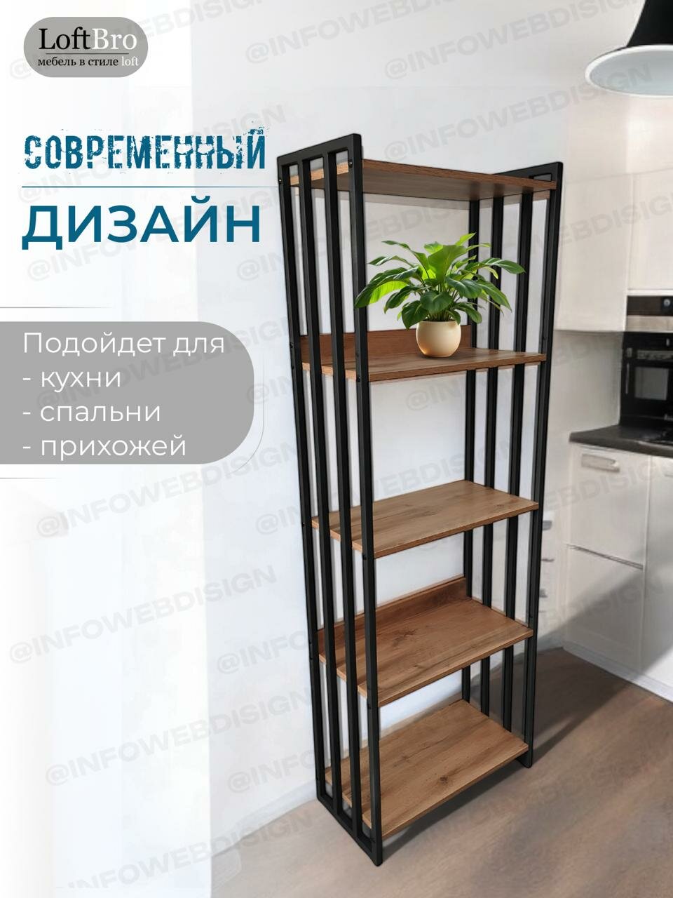Уникальный стеллаж "Вертикаль", напольный, 5 полок, ЛДСП, металл, чёрный, коричневый интересное: