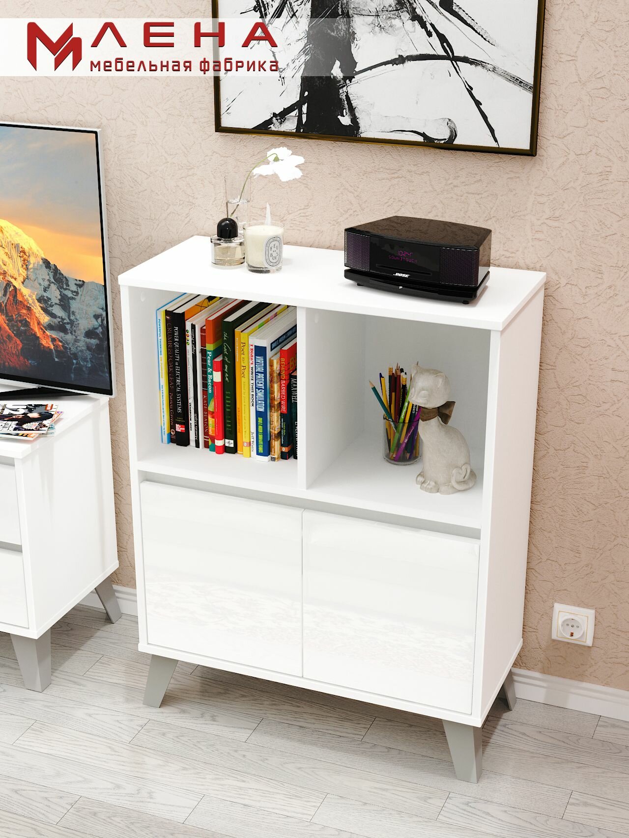 Стеллаж Мебельная фабрика Лена №12, белый глянец, ЛДСП, высота 86,8 см интересное: