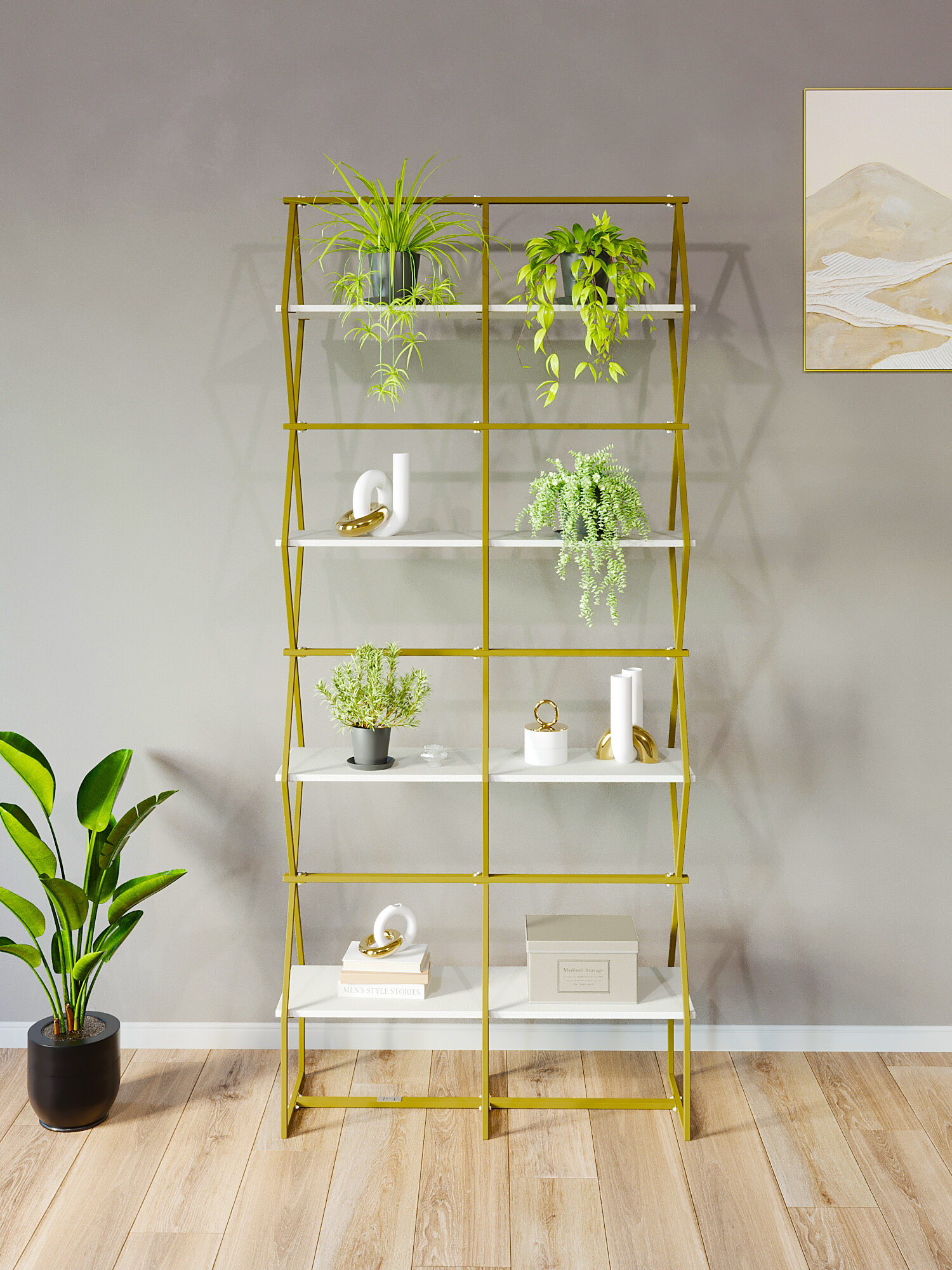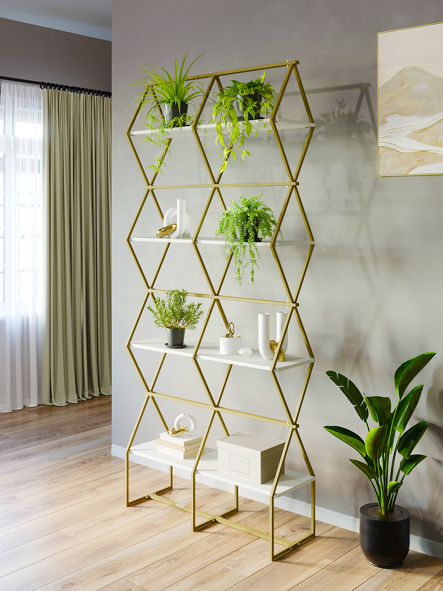 СохранитьСтеллаж для дома KM LOFT Ромбо Ст в гостиную, для книг, перегородка золото/белый интересное: