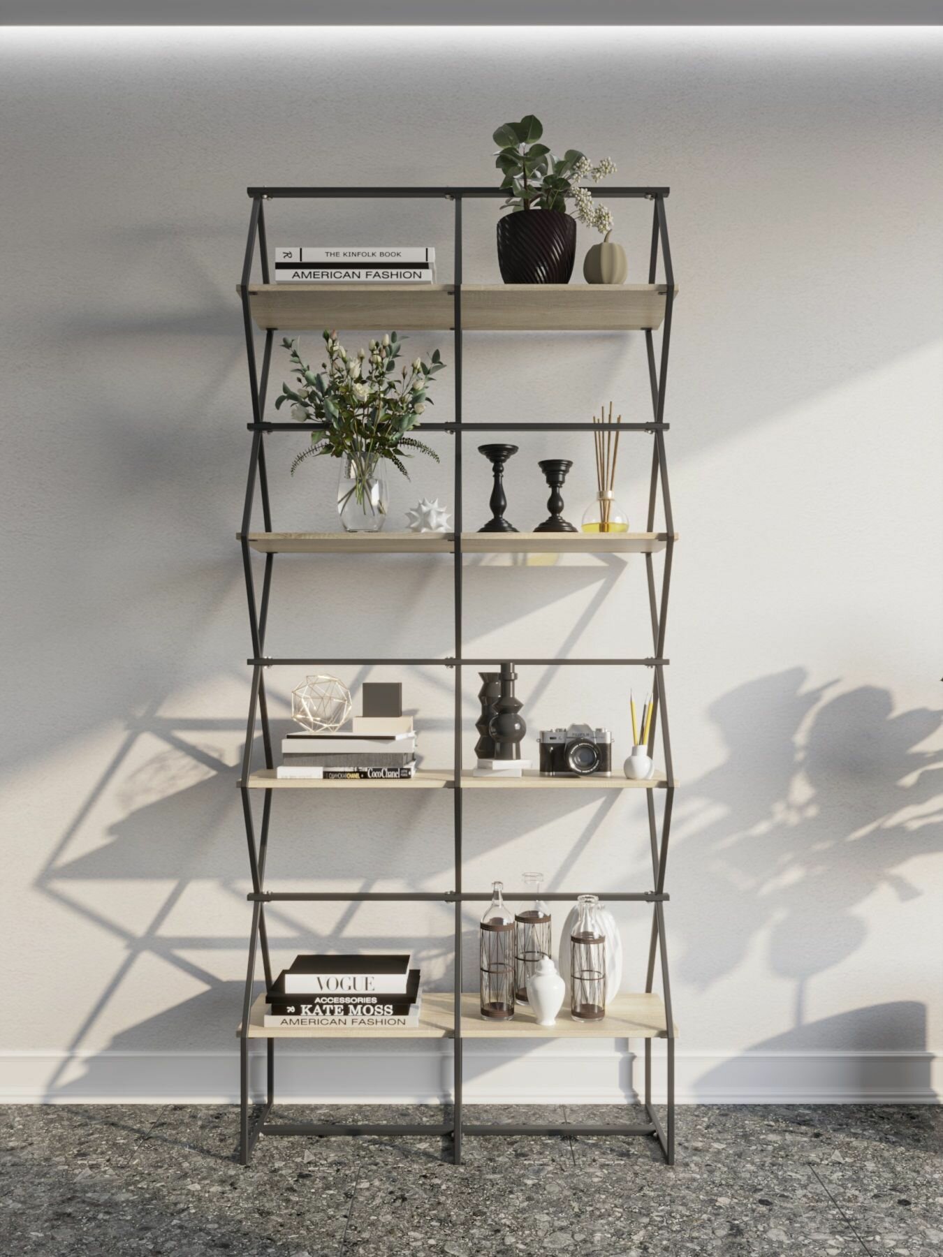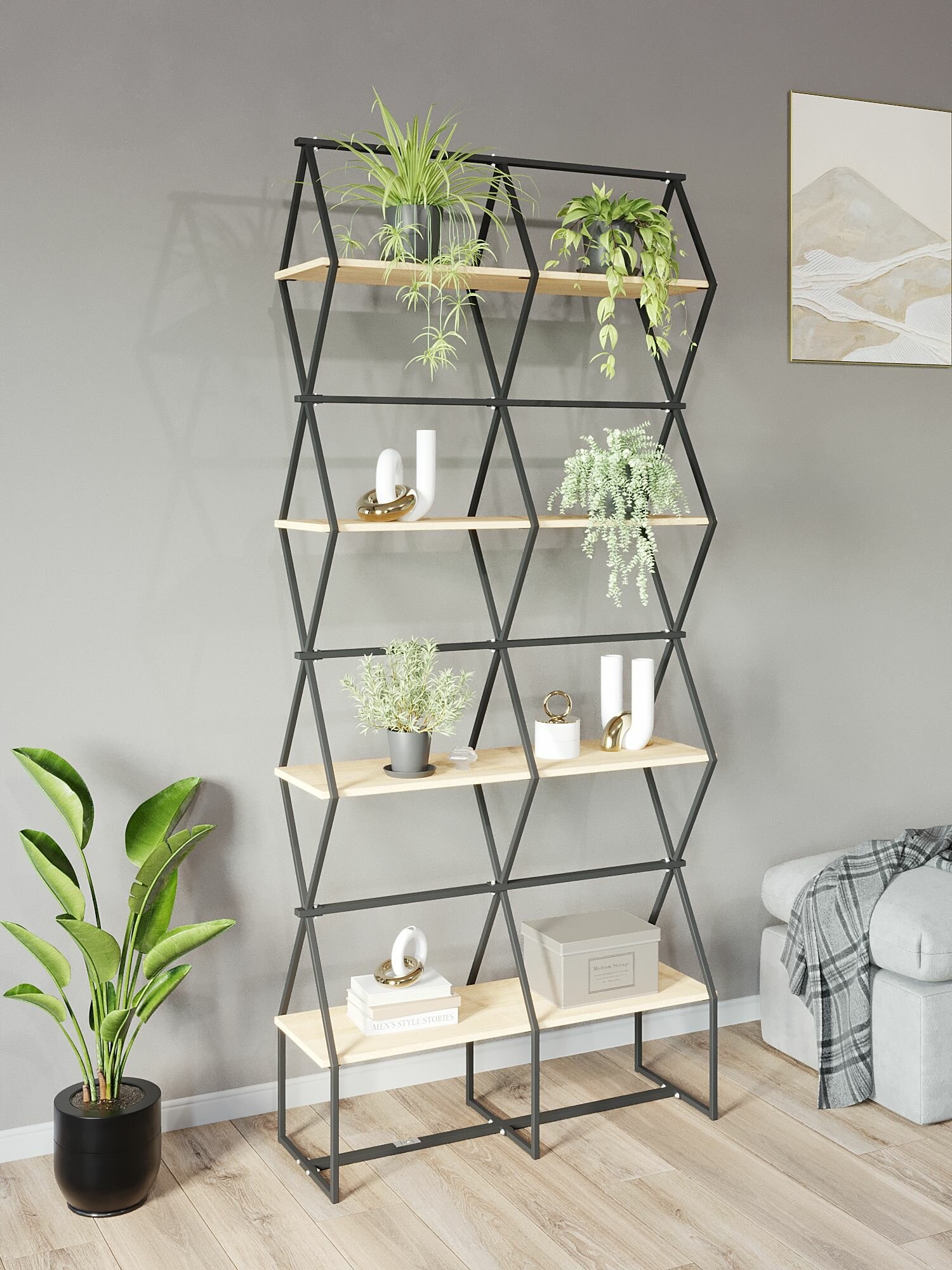 Купить Стеллаж для дома KM LOFT Ромбо Ст в гостиную, для книг, перегородка черный/дуб сонома