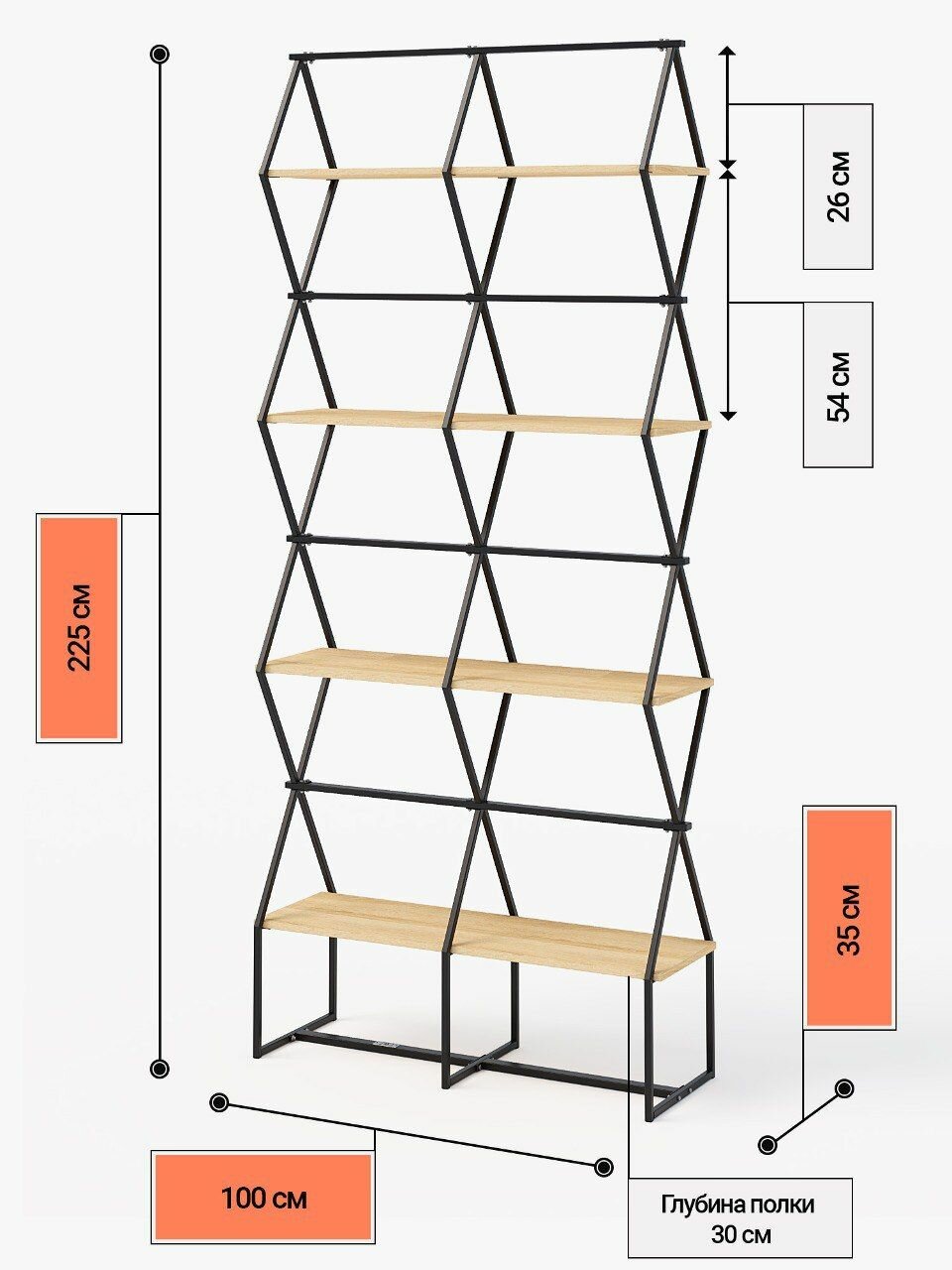 СохранитьСтеллаж для дома KM LOFT Ромбо Ст в гостиную, для книг, перегородка черный/дуб сонома интересное: