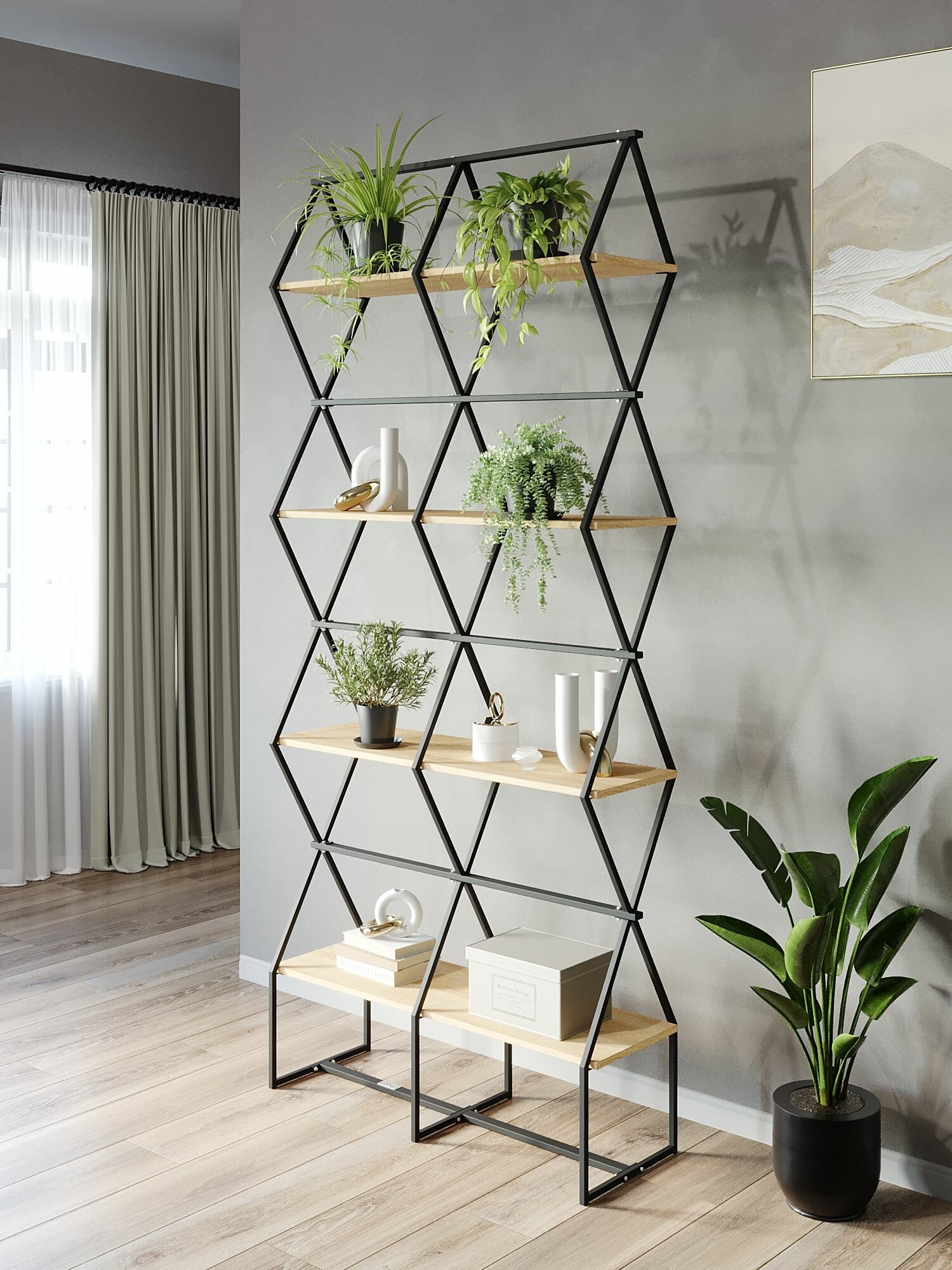 Стеллаж для дома KM LOFT Ромбо Ст в гостиную, для книг, перегородка черный/дуб вотан