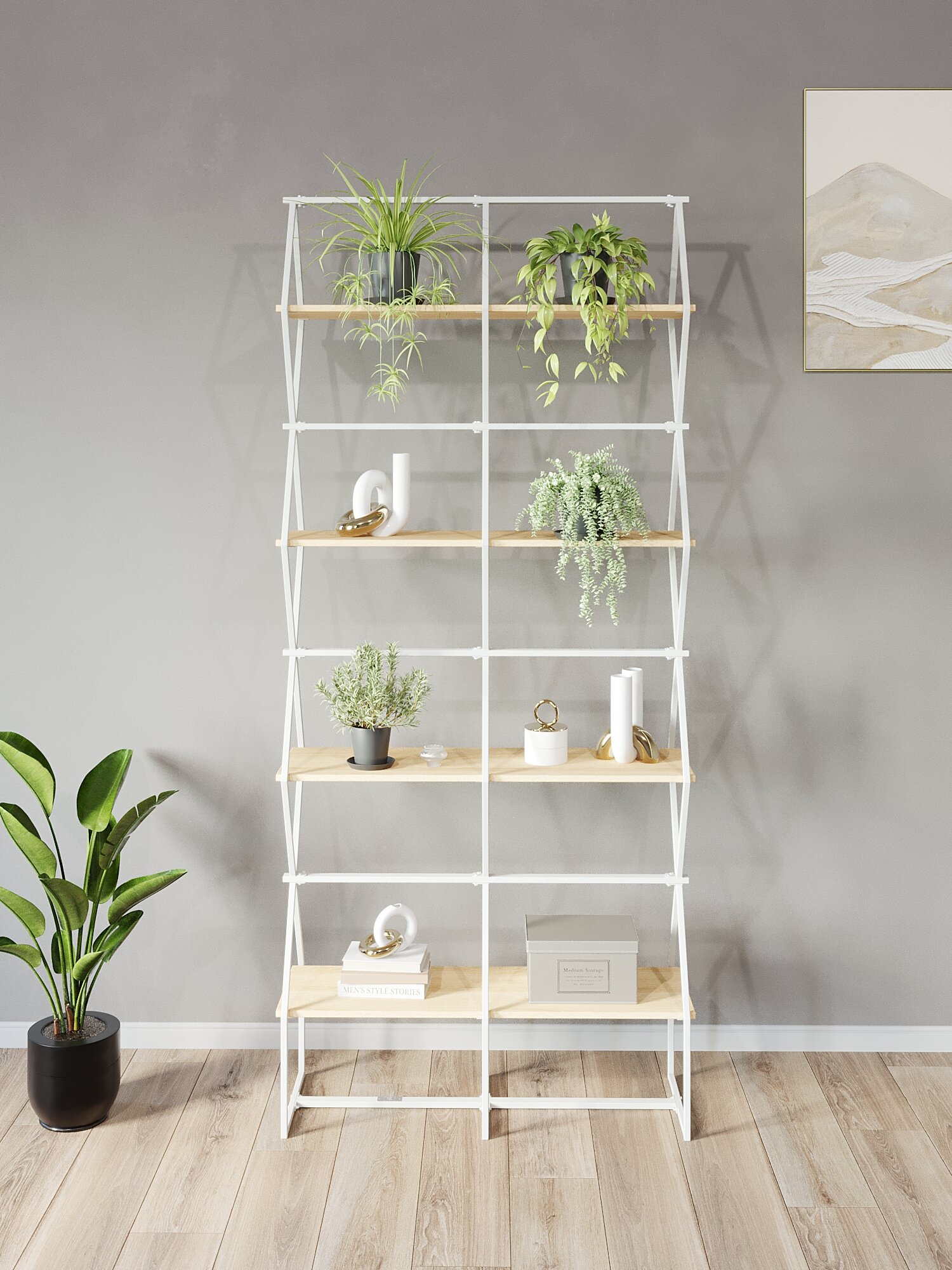 Стеллаж для дома KM LOFT Ромбо Ст в гостиную, для книг, перегородка белый/дуб вотан