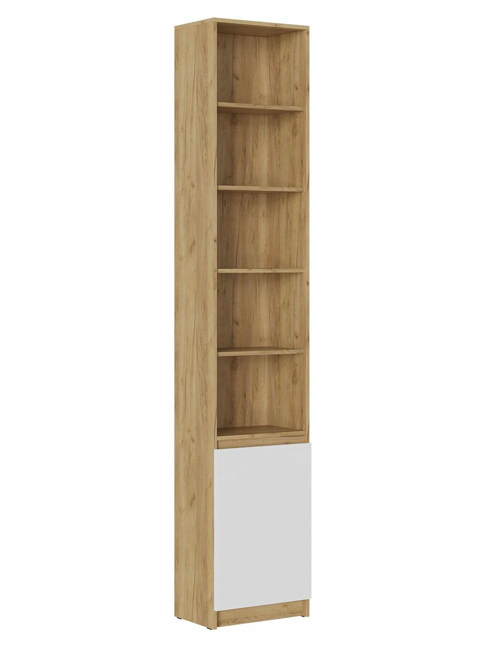 Купить Стеллаж Бостон СЖ-001 с полками, с дверцей, 45х31х236 см, Дуб Крафт золотой / Белый глянец