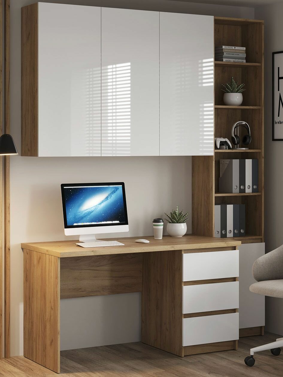 Стеллаж Бостон СЖ-001 с полками, с дверцей, 45х31х236 см, Дуб Крафт золотой / Белый глянец интересное: