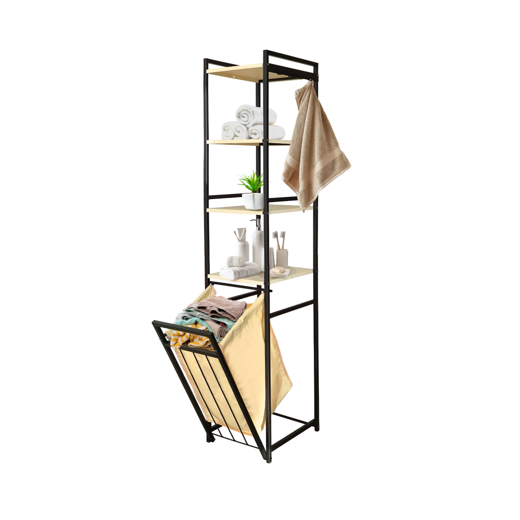 Купить Стеллаж металлический бежевый напольный для ванной с корзиной для белья