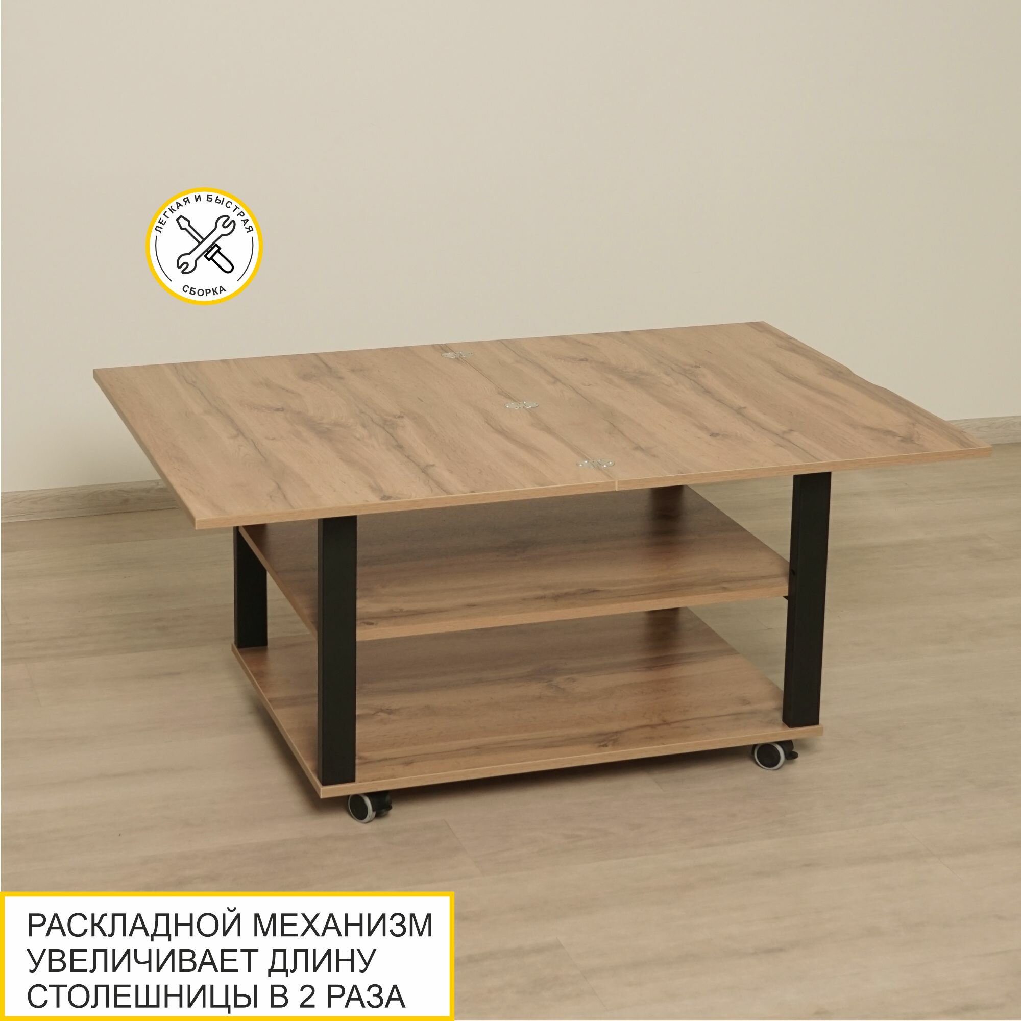 Журнальный стол-трансформер Рим 24.10 (05) Дуб Канадский/Черный, 75х55х54 см