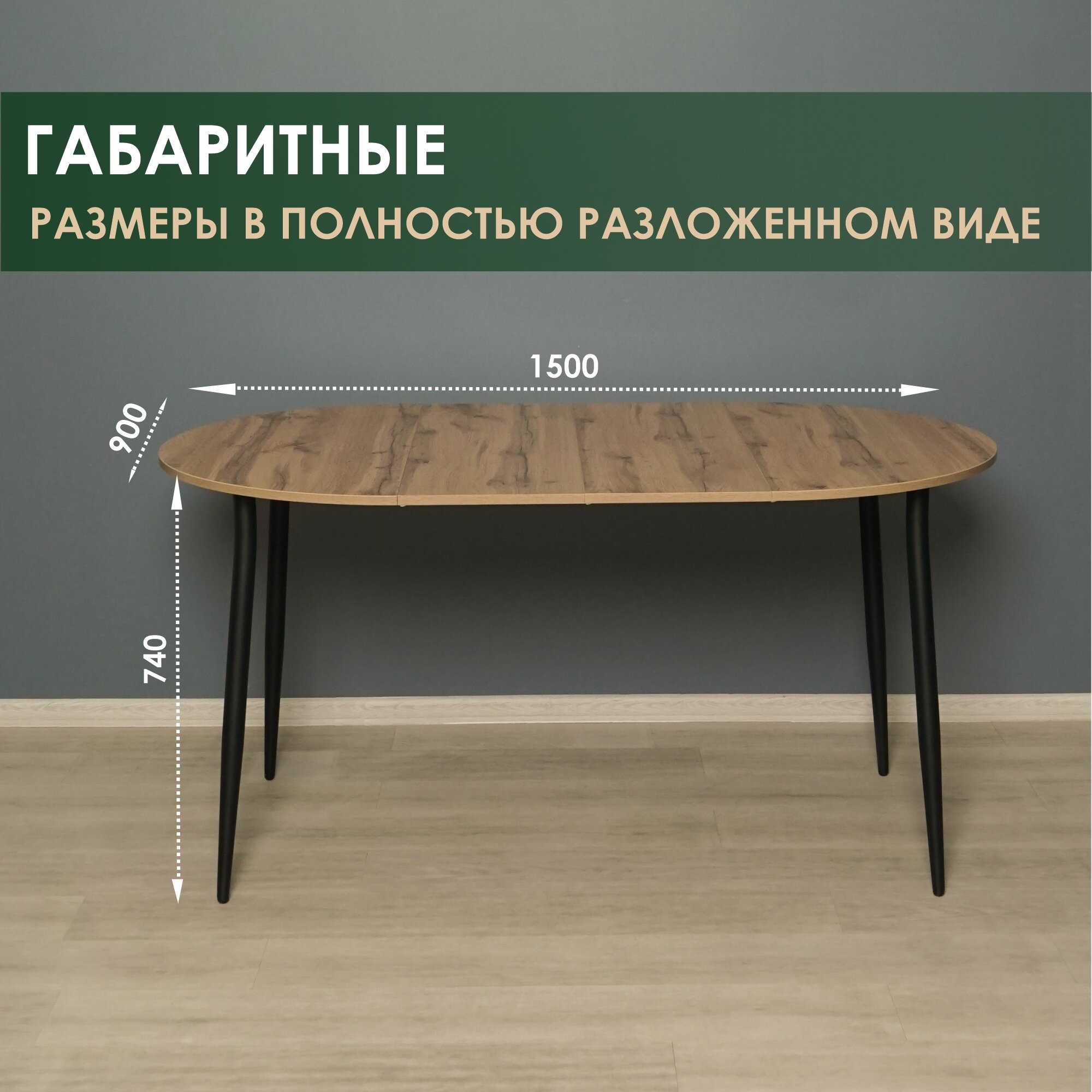Стол обеденный круглый раздвижной Оскар 4 (01) Дуб Вотан/Черный, 90х90х74 интересное: