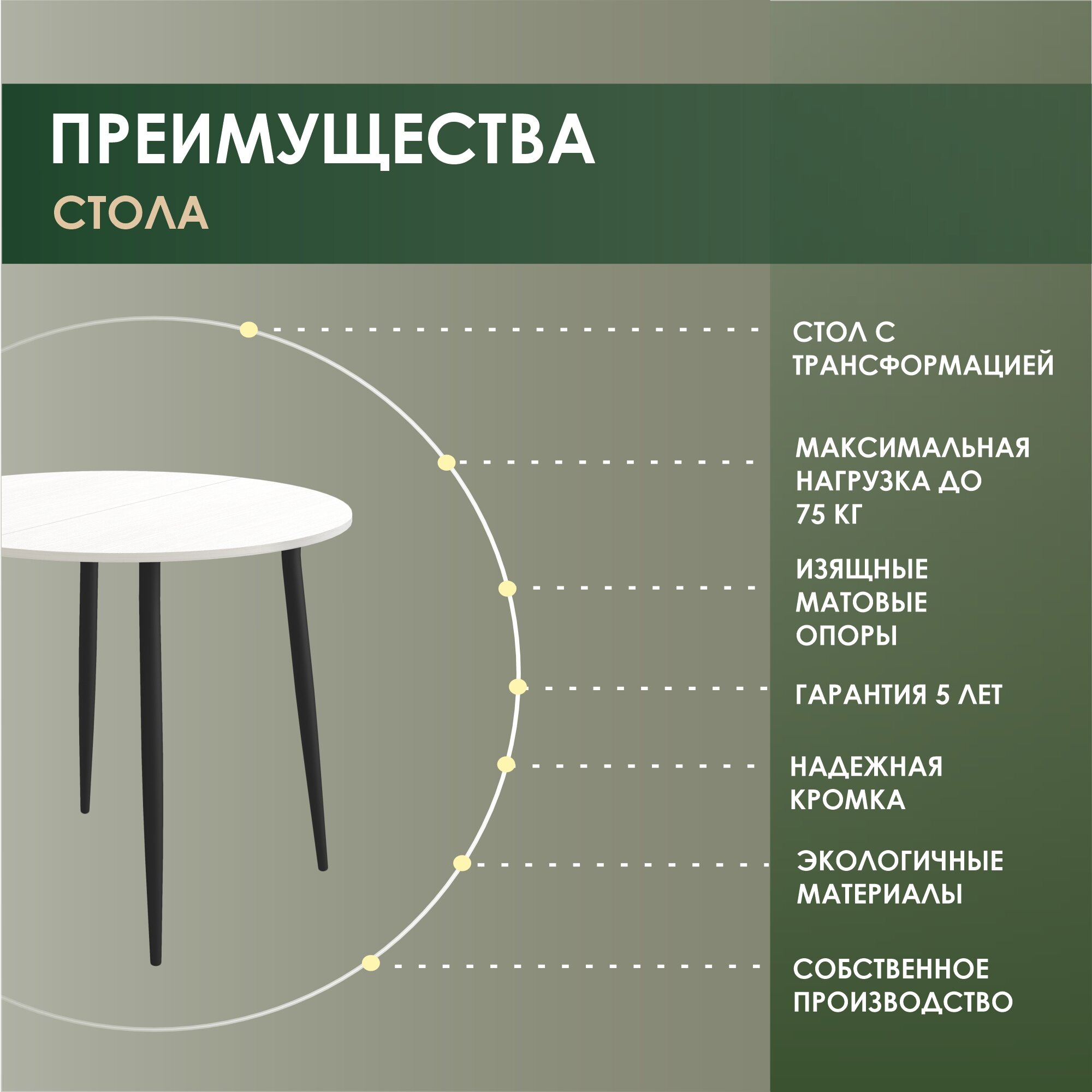 Стол обеденный круглый раздвижной Оскар 4 (02) Белый шпон/Черный, 90х90х74 интересное: