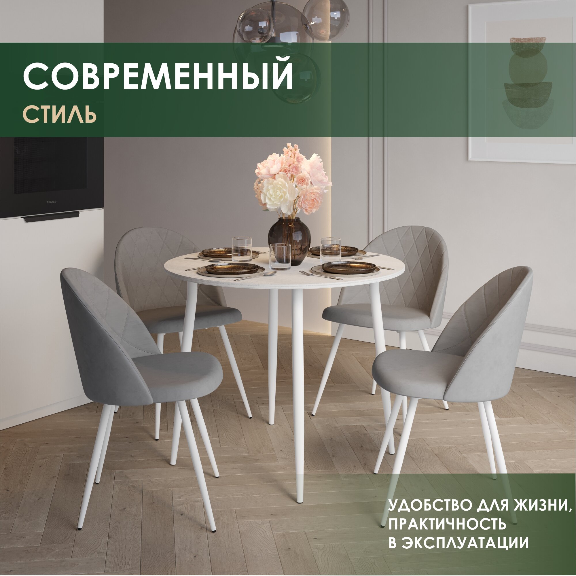 Стол обеденный круглый раздвижной Оскар 4 (03) Белый шпон/Белый, 90х90х74 интересное: