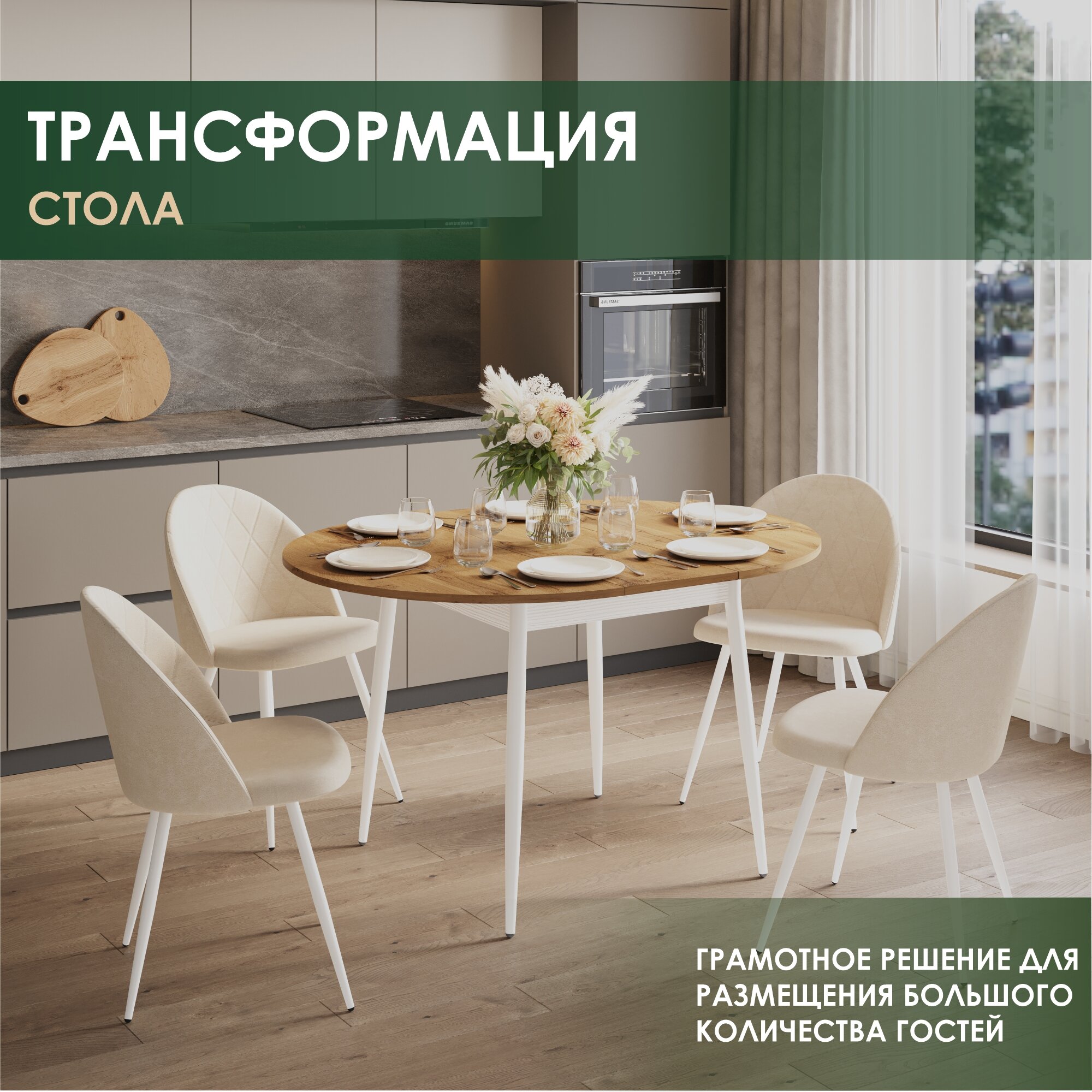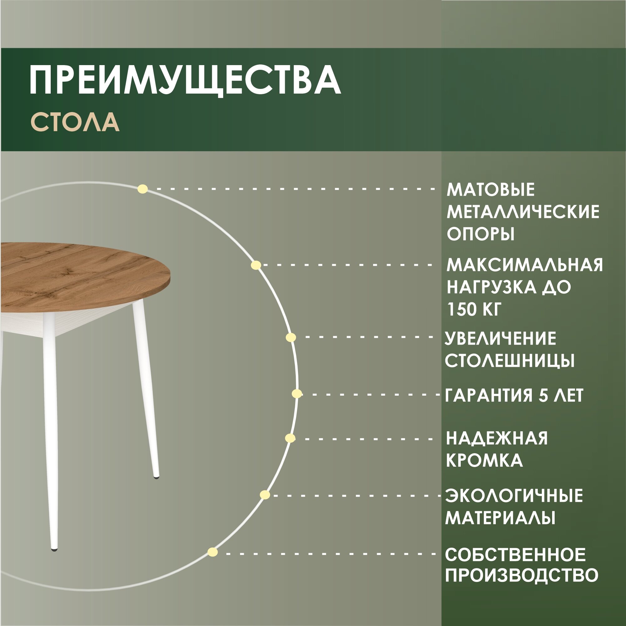 Стол обеденный круглый раздвижной Оскар 2.1 (05) Дуб Вотан/Белый шпон/Белый, 100х100х76 см интересное: