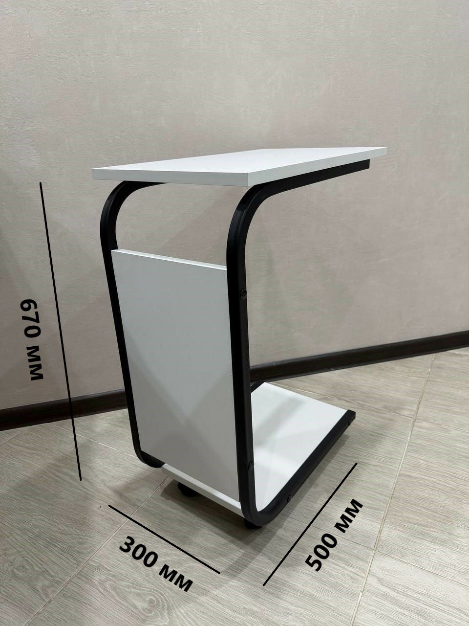 Стол журнальный подкатной, прикроватный, придиванный на колесиках, ЛДСП белый