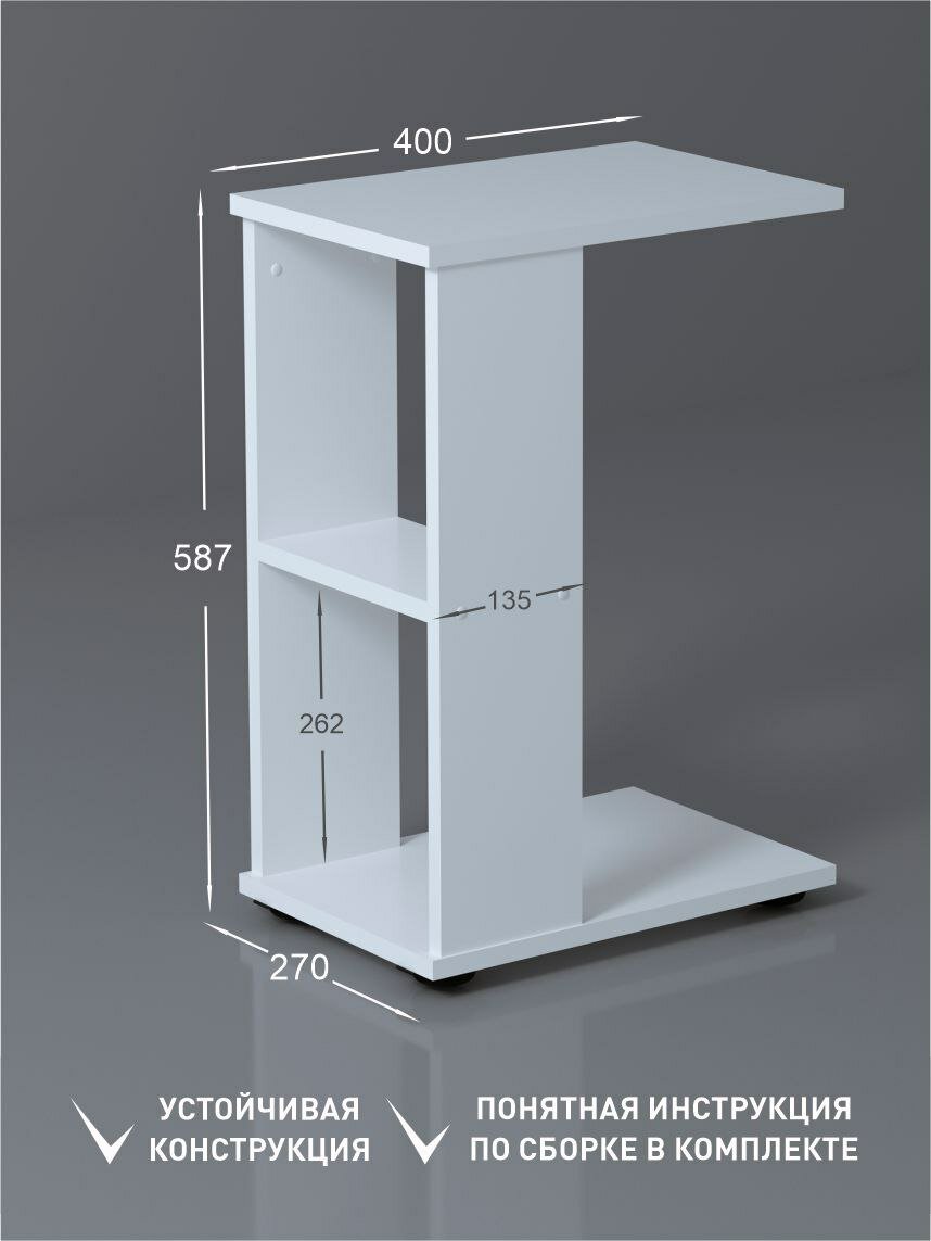 Купить Столик приставной к дивану, прикроватный, для ноутбука, ЛДСП белый