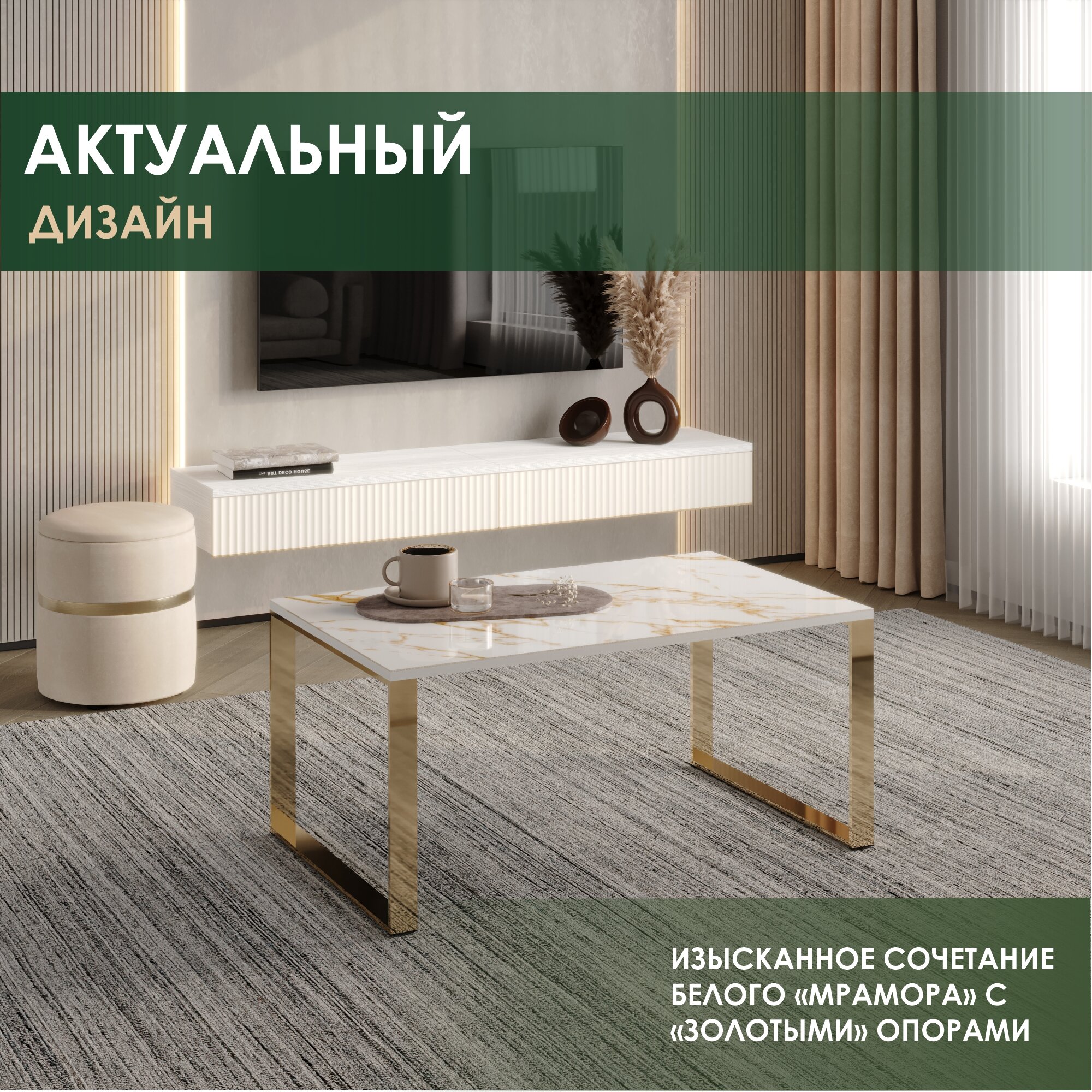 Журнальный стол Рим 31 (01) Белый мрамор/Золото, 100х60х45 см