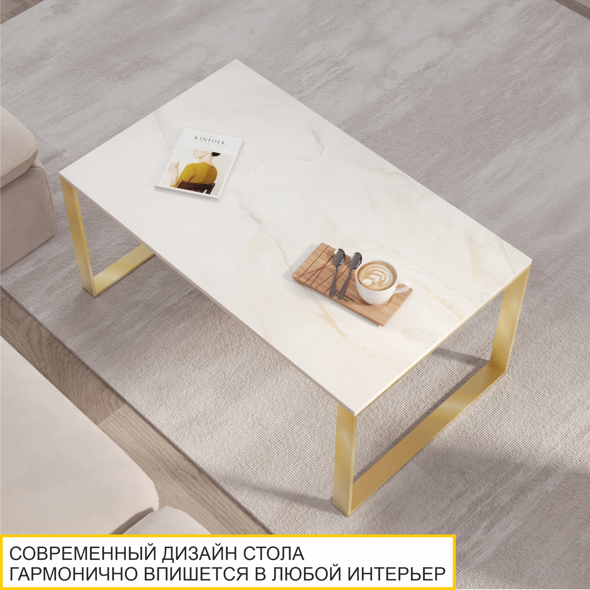 Журнальный стол Сириус 4 (01) Белый мрамор/Золото, 100х60х45 см