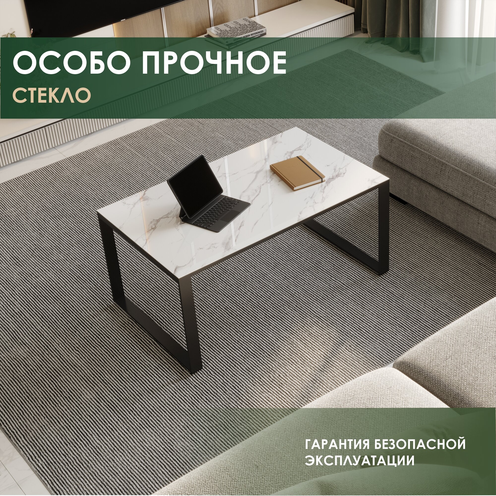 Купить Журнальный стол Сириус 4 (02) Белый мрамор/Черный, 100х60х45 см