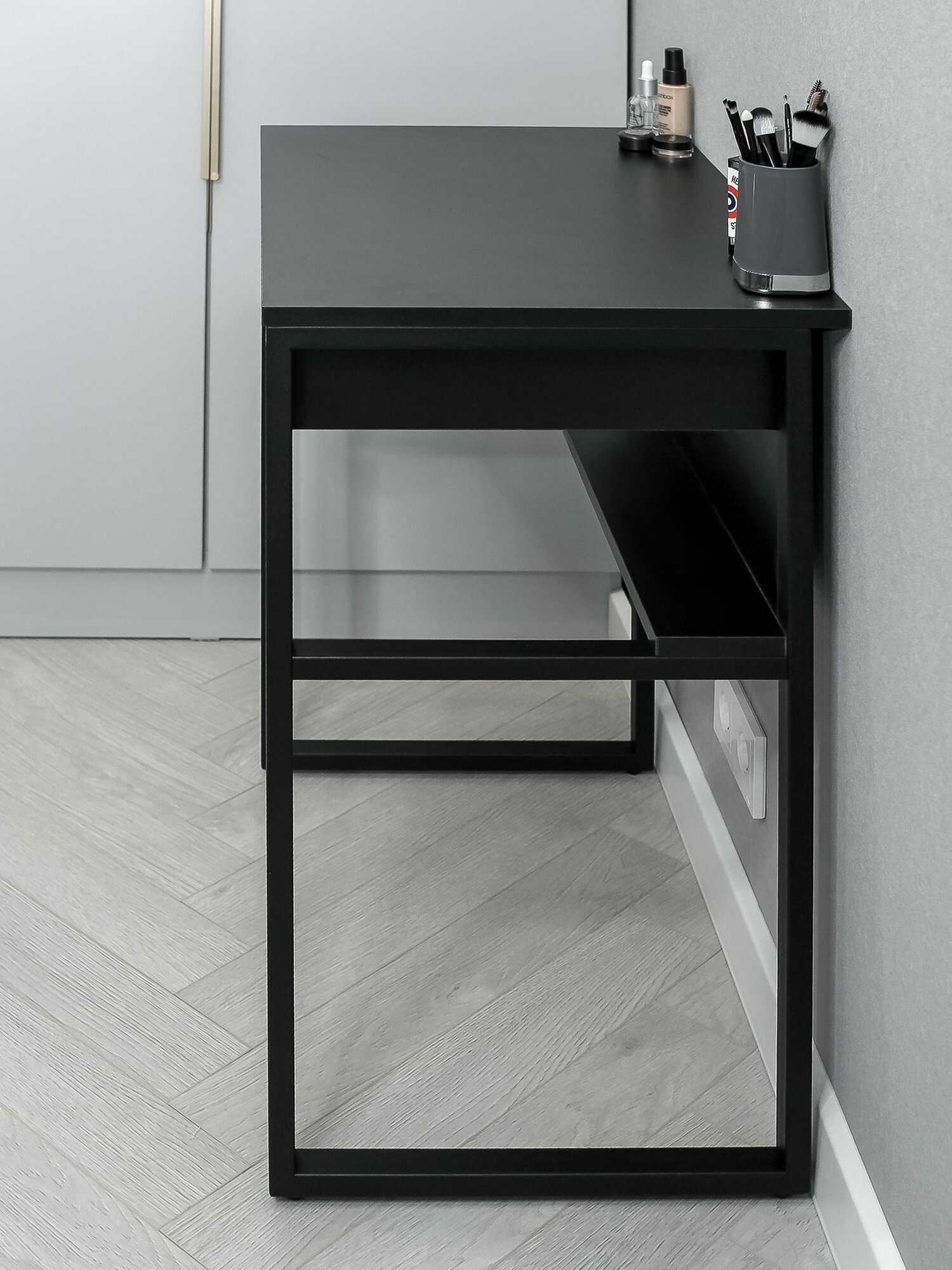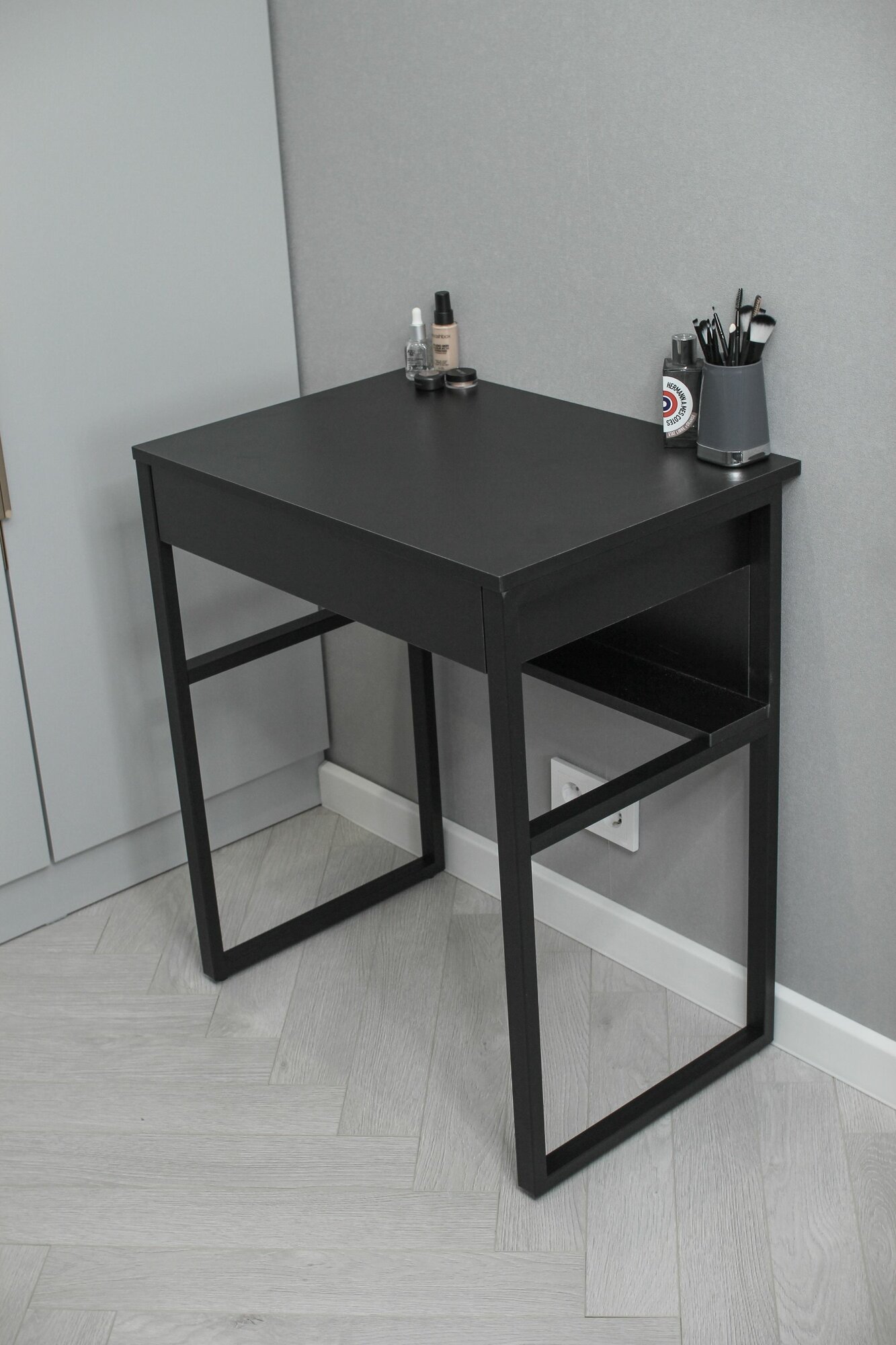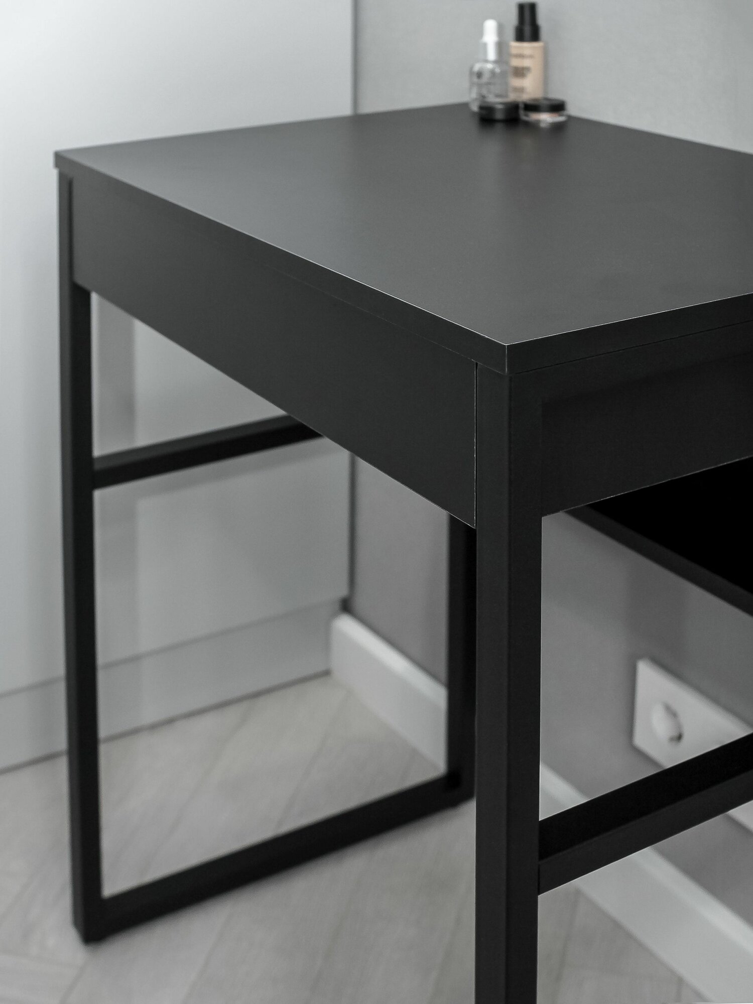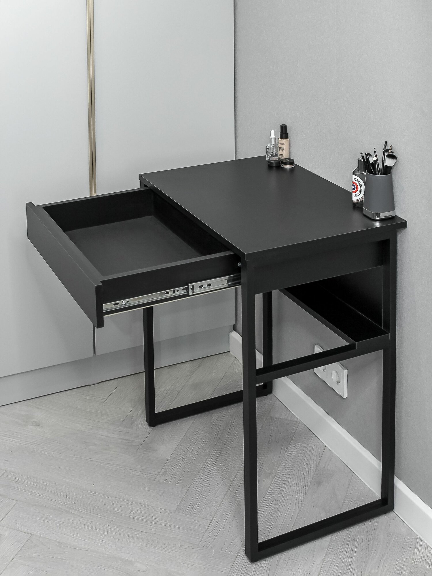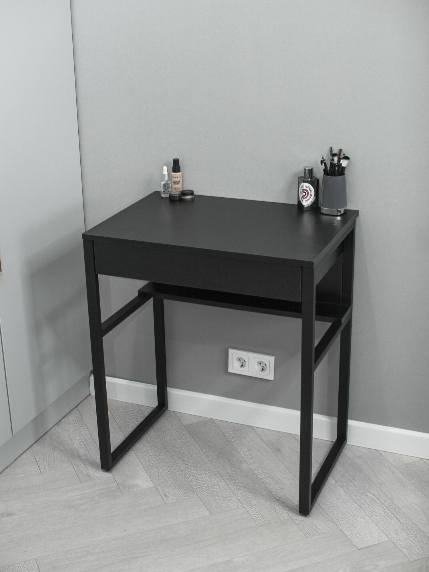 Стол туалетный с ящиком макияжный LOFT-80 на металлических ножках (черный)