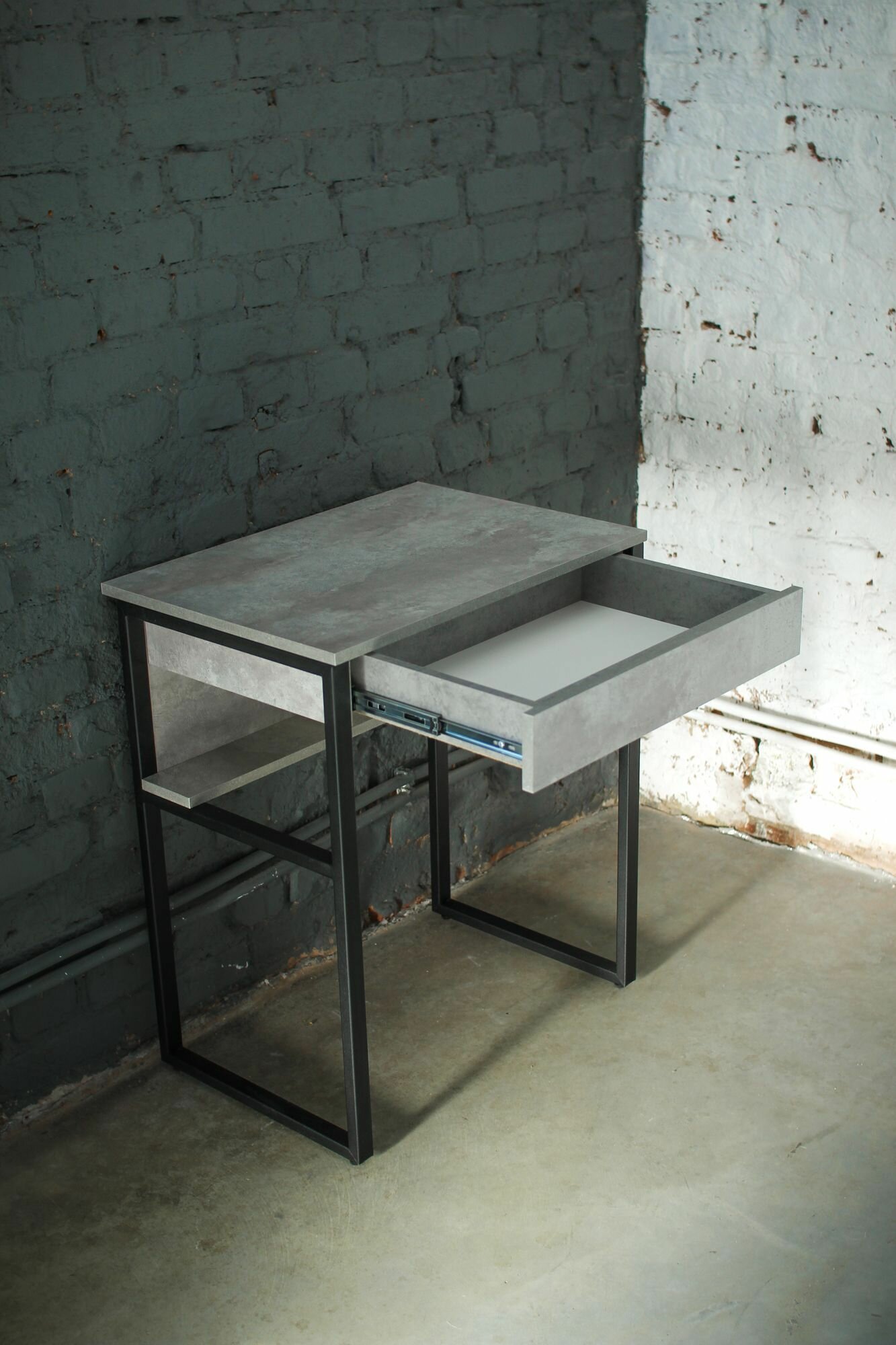Стол туалетный с ящиком макияжный LOFT-80 на металлических ножках (цемент)