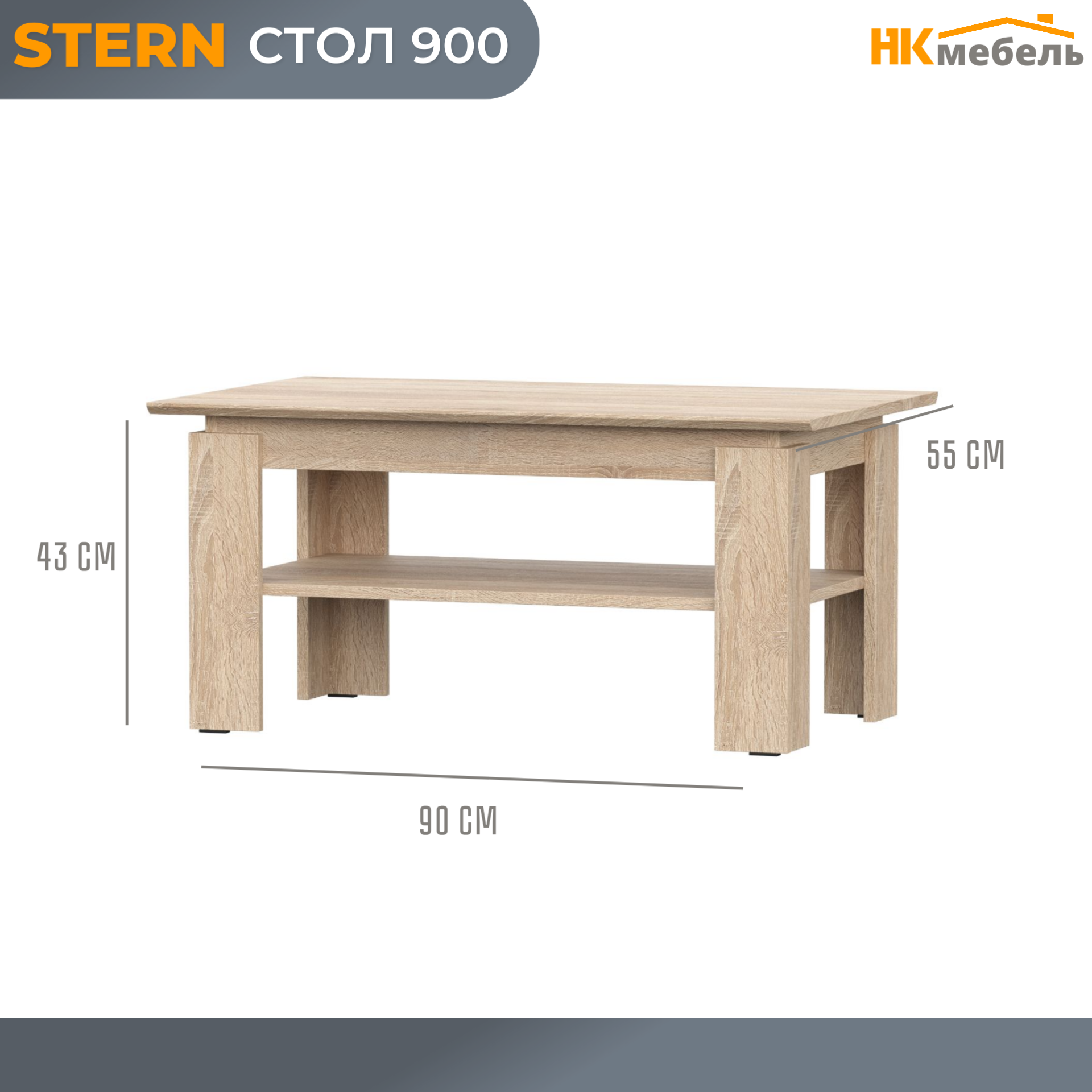 STERN (штерн) стол 900 Дуб Сонома, 90 х 43 х 55 см, с полкой, ЛДСП интересное: