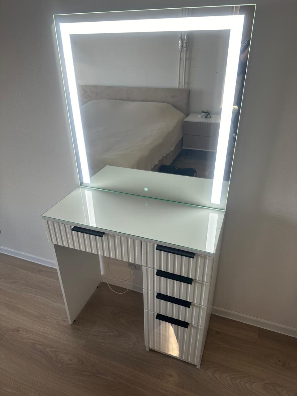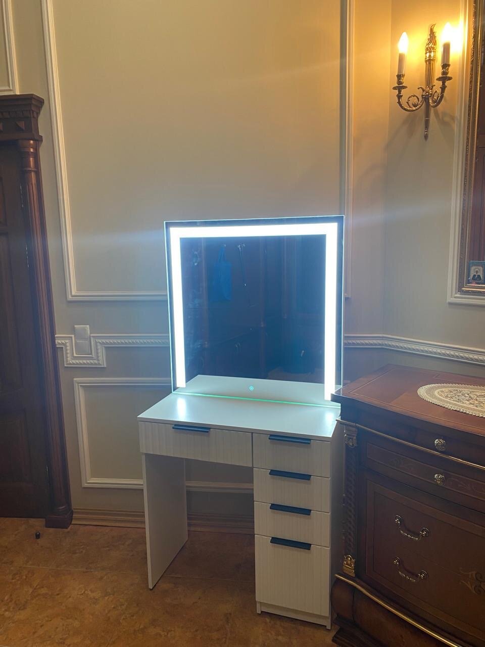 Туалетный столик GRIMSTOL 2ДЕ60-ВТ, гримёрное зеркало, LED-подсветка для макияжа, для спальни, белый, Вельвет