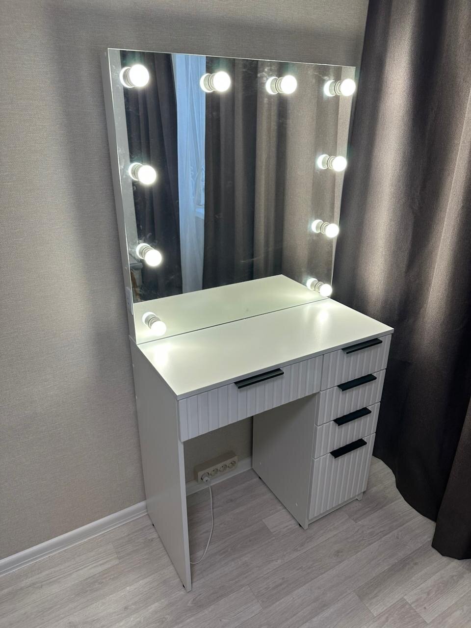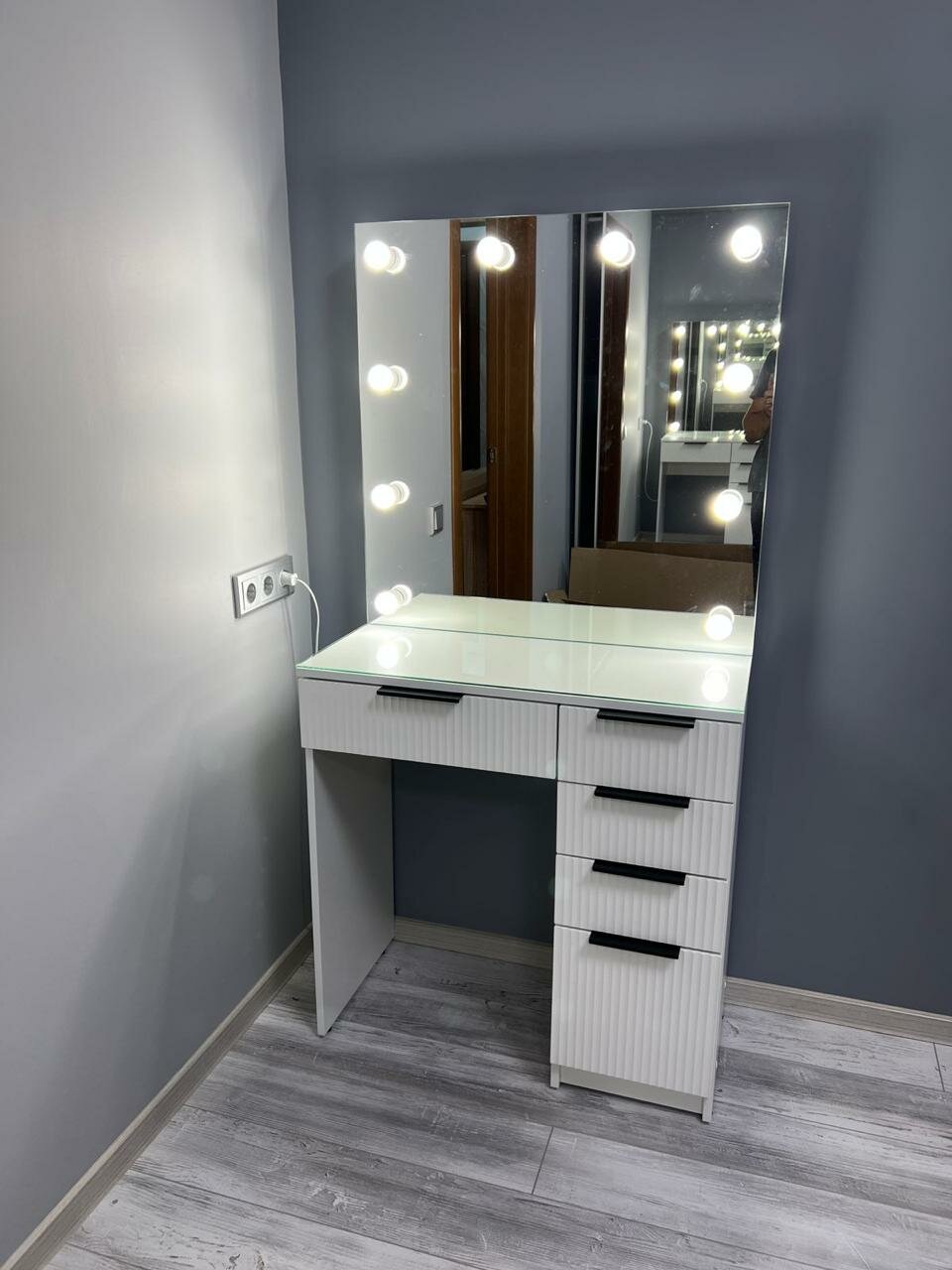 Туалетный столик GRIMSTOL 2Р80-ВТ, гримёрное зеркало с лампочками, LED-подсветка для макияжа, для спальни, белый, Вельвет