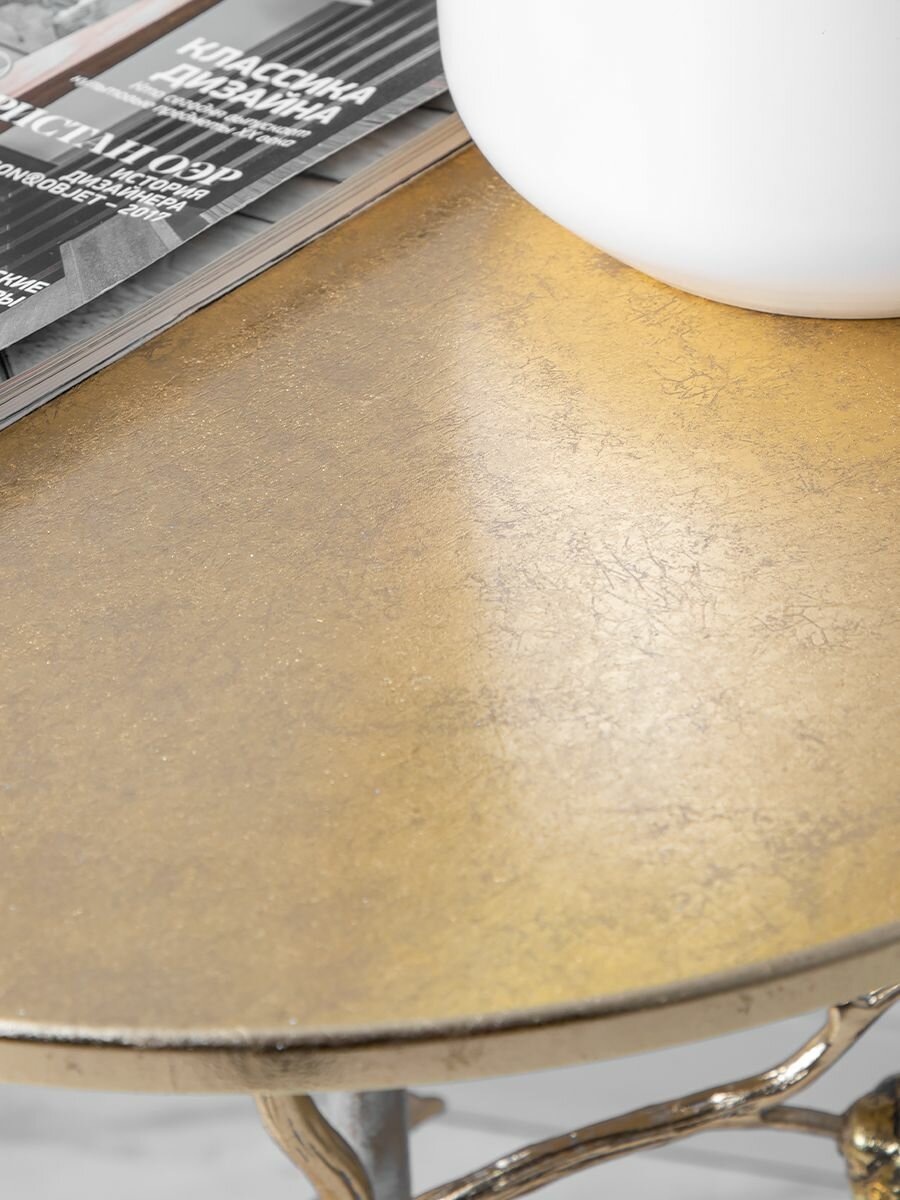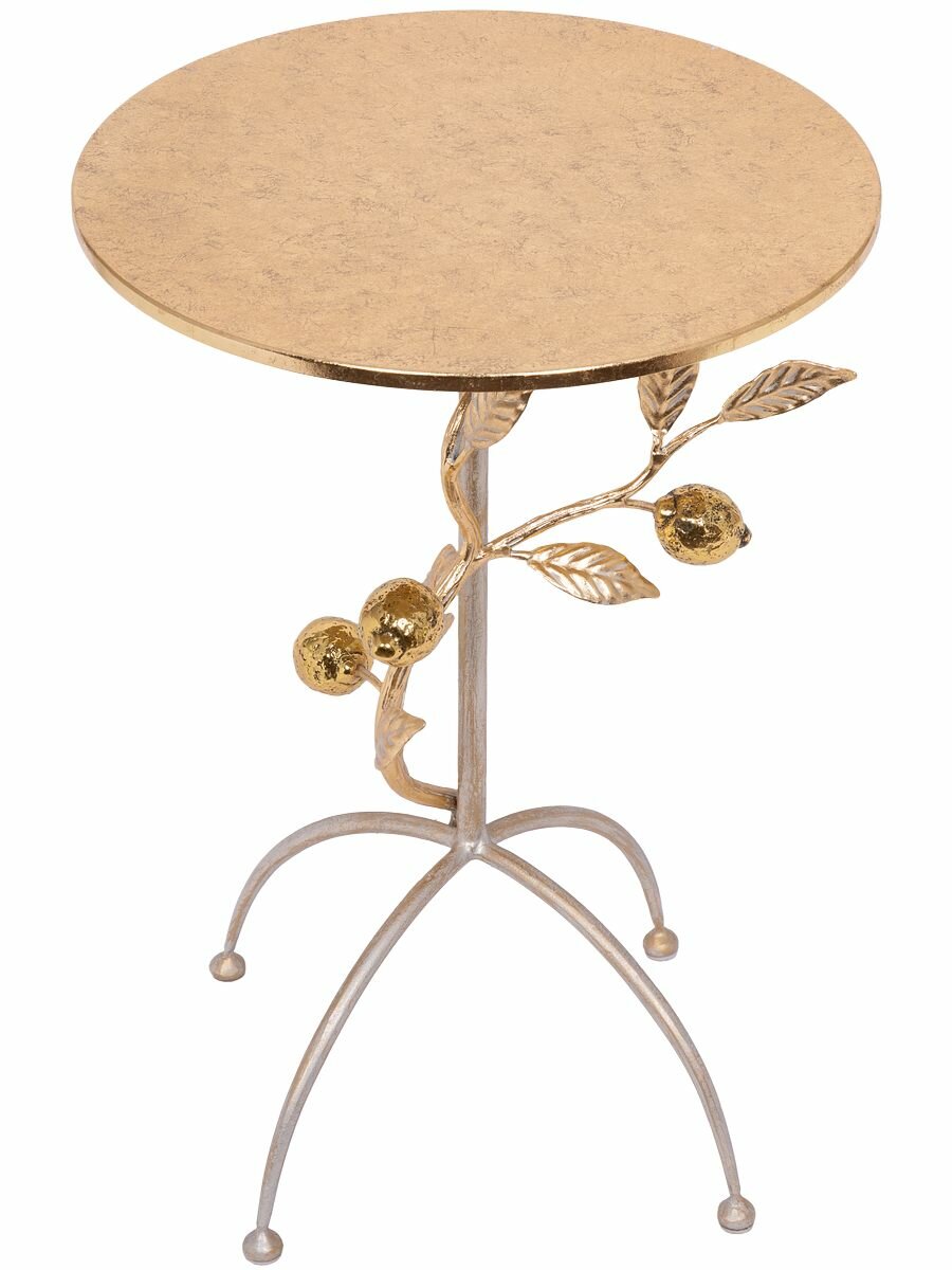 Кофейный круглый столик Bogacho Лайм Лаш с деревянной столешницей и фигурной металлической ножкой с цитрусами интересное: