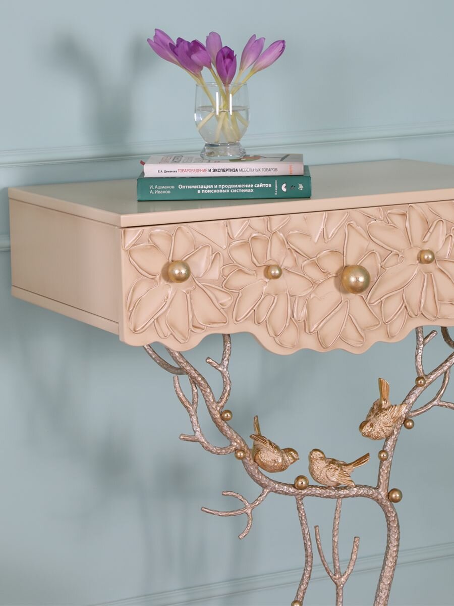 Консольный туалетный столик Bogacho Терра с выдвижным ящиком на фигурной ножке для спальни, прихожей и коридора интересное: