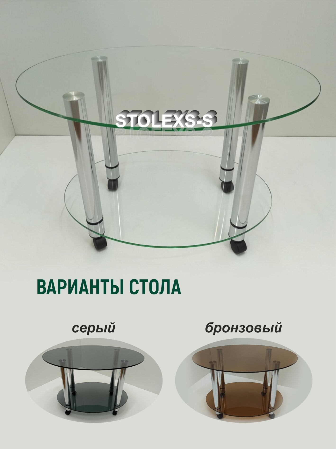 Журнальный овальный стол на колесиках Ж-3 бесцветный 80х60см