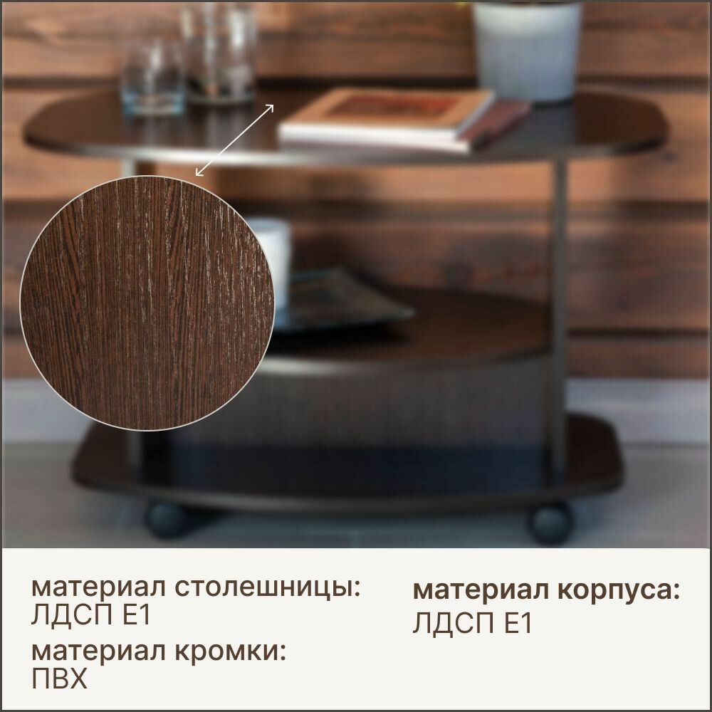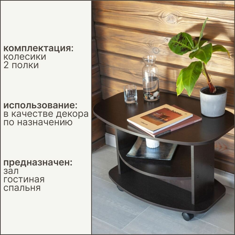 Журнальный столик на колесиках с полкой Hesby Coffee 1 венге интересное: