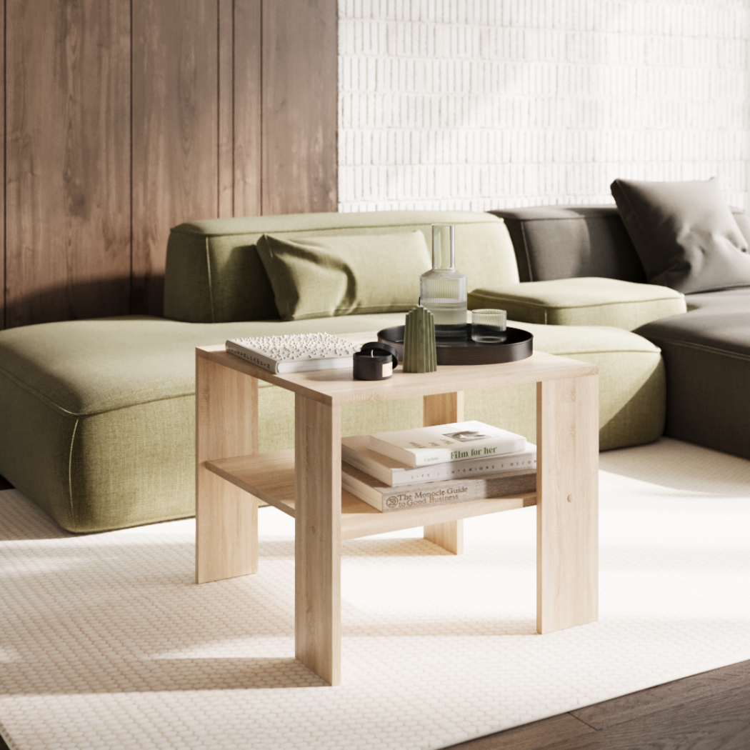 Купить Журнальный стол Граникум "Маринетт", 55х55.1х44.3см, современный дизайн, с полкой, ЛДСП, дуб сонома