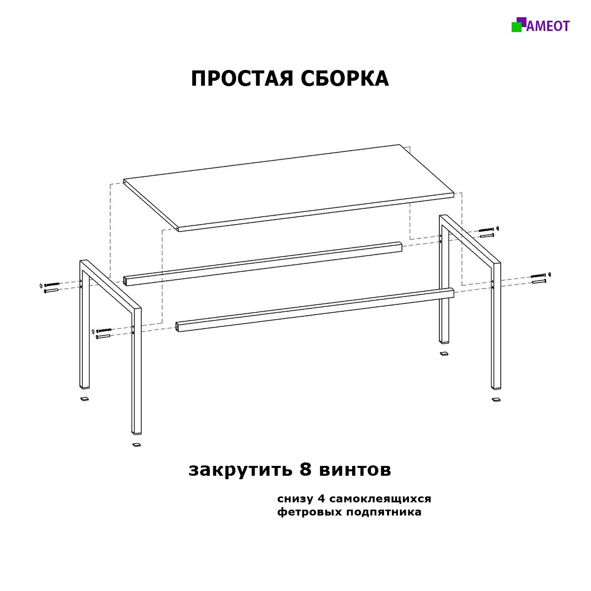 Журнальный стол на металлокаркасе Лимнак 7W ш104/г52/в39 белый/черный