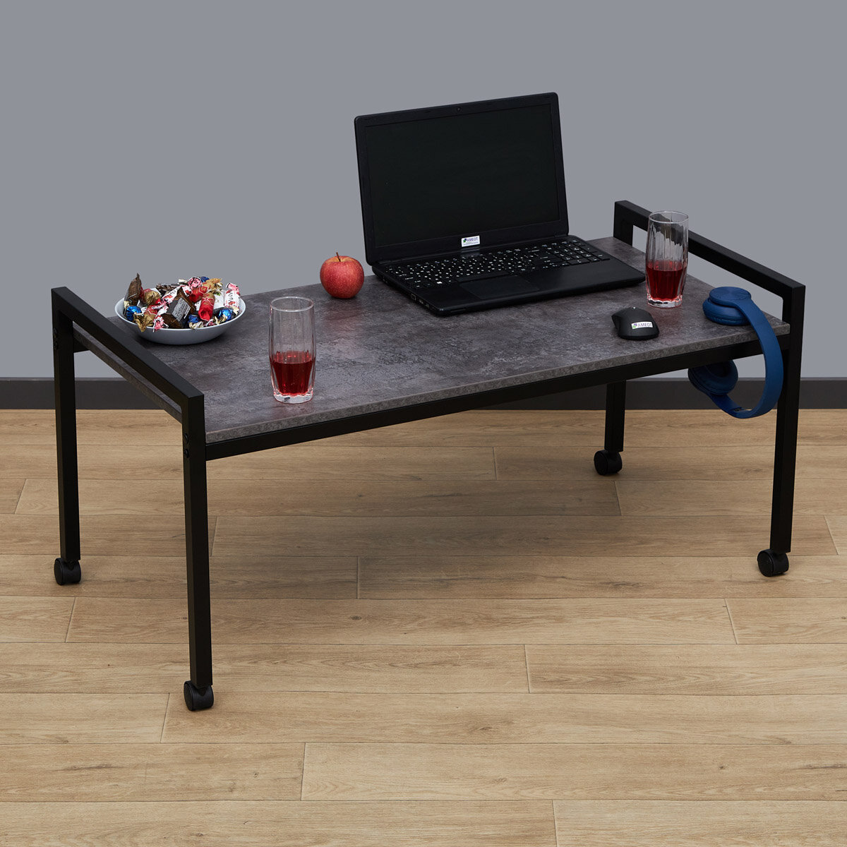 Журнальный стол на металлокаркасе Лимнак 6ЦТ ш60/г40/в40 цемент темный/черный на колесиках