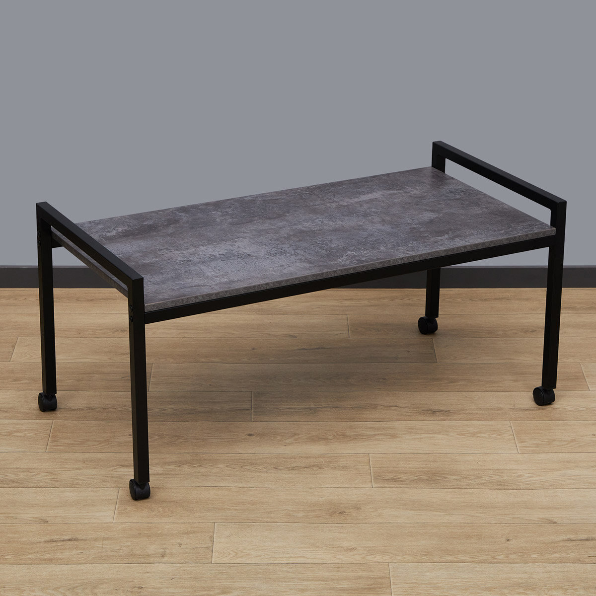 Купить Журнальный стол на металлокаркасе Лимнак 8ЦТ ш104/г52/в44 цемент темный/черный на колесиках