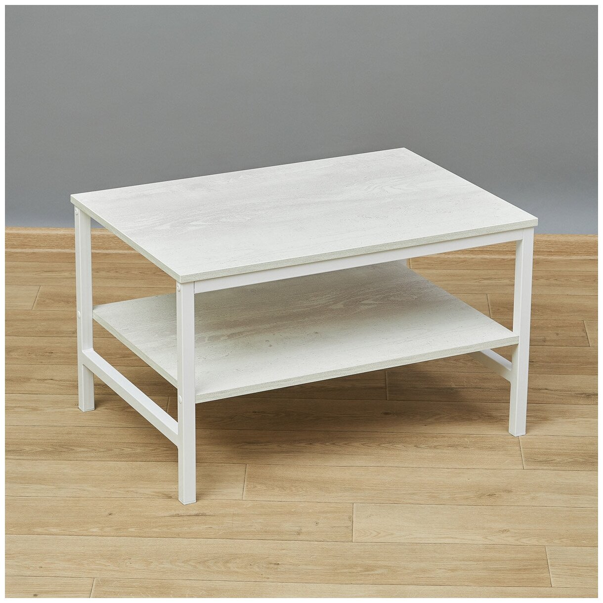 Журнальный стол на металлокаркасе Лимнак 2С ш75/г52/в45 сосна битон белый/черный