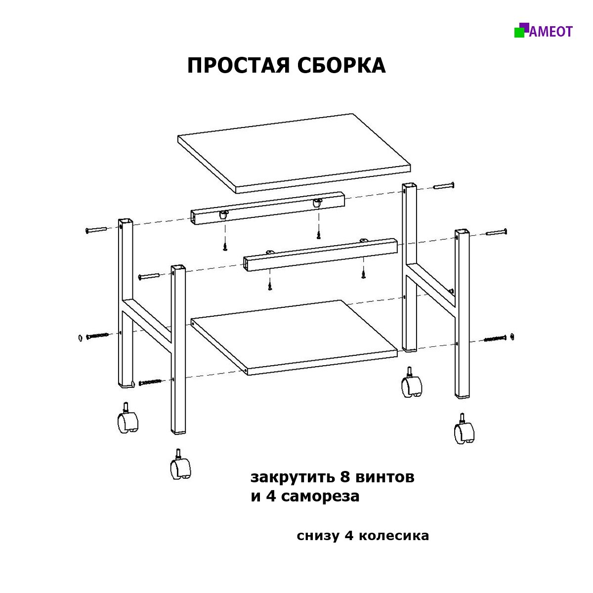 Журнальный стол на металлокаркасе Лимнак 4W ш42/г37/в46 белый/черный на колесиках