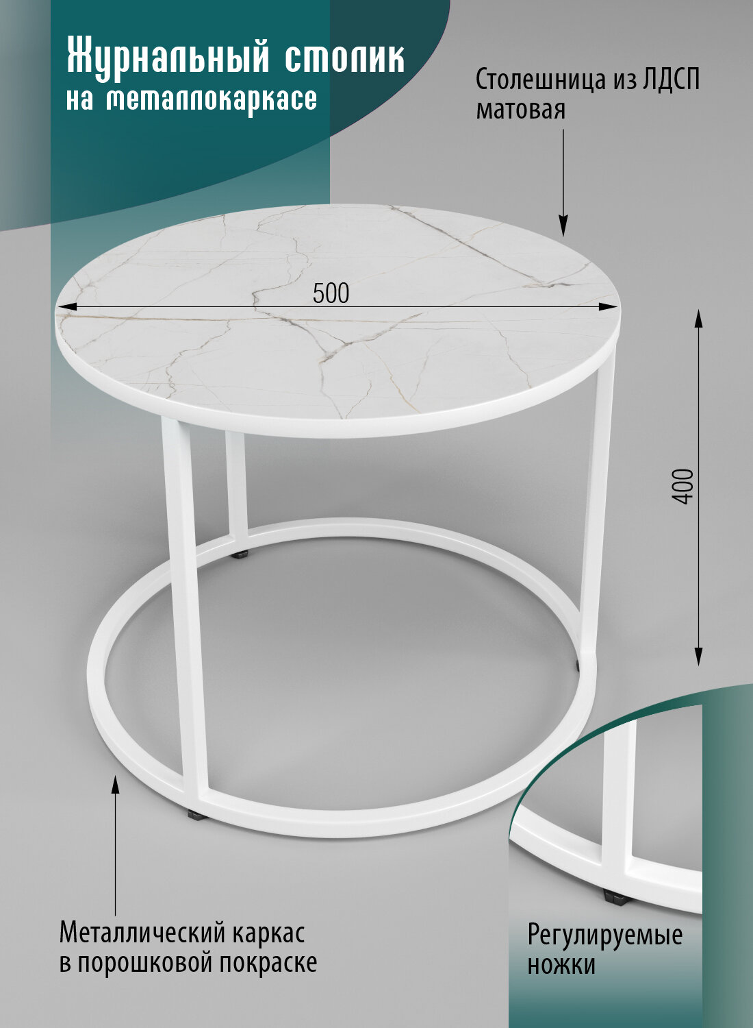 Стол журнальный Соло. Каспий светлый/белый