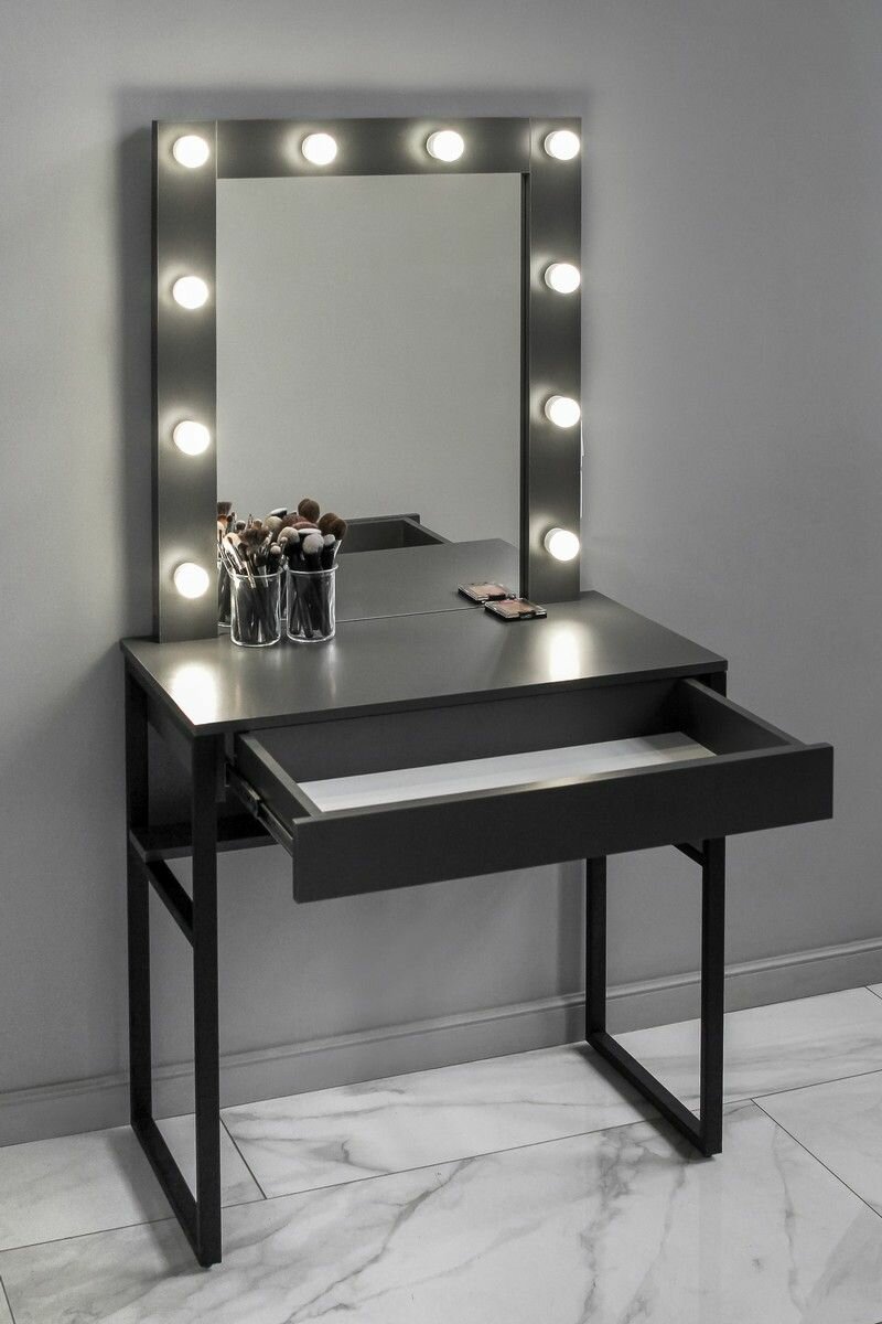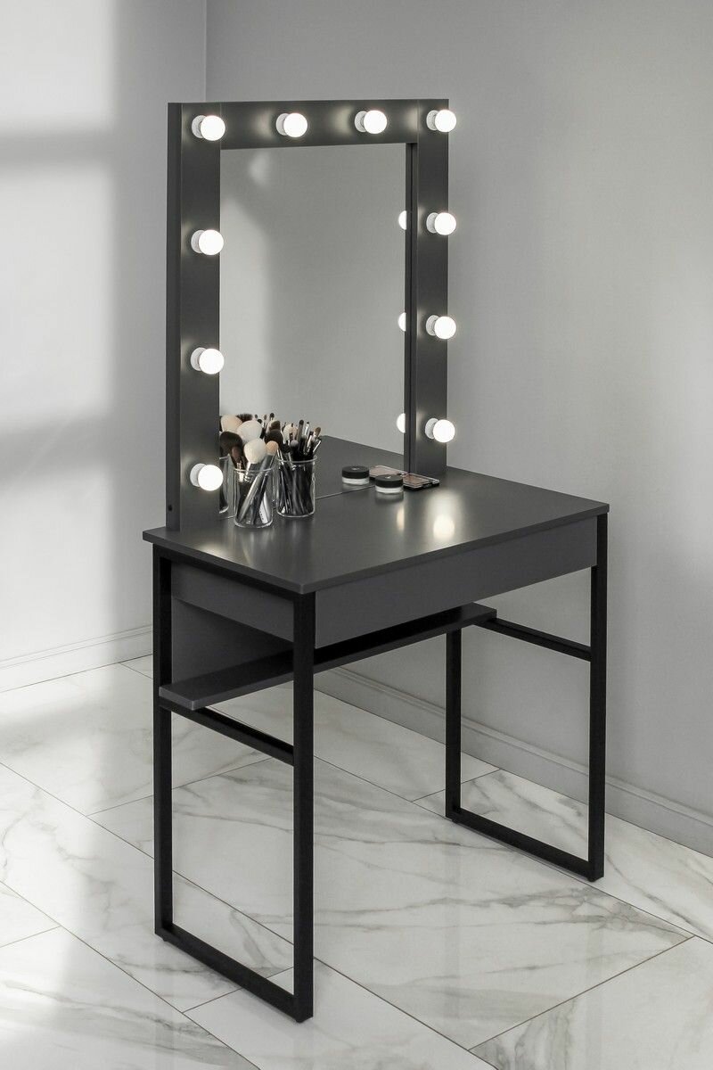 Ниже Вы можете прочитать отзывы на Туалетный столик графит с зеркалом в раме на металлокаркасе LOFT, ознакомится с подробными характеристиками, посмотреть интересные обзоры и фотографии на Туалетный столик графит с зеркалом в раме на металлокаркасе LOFT.