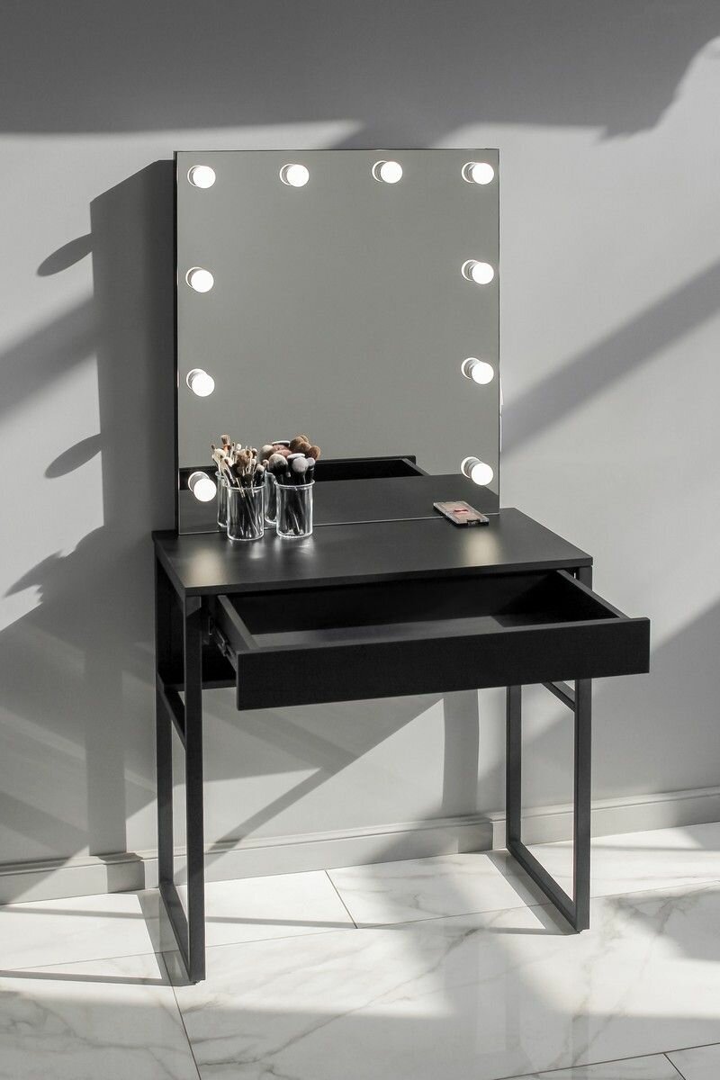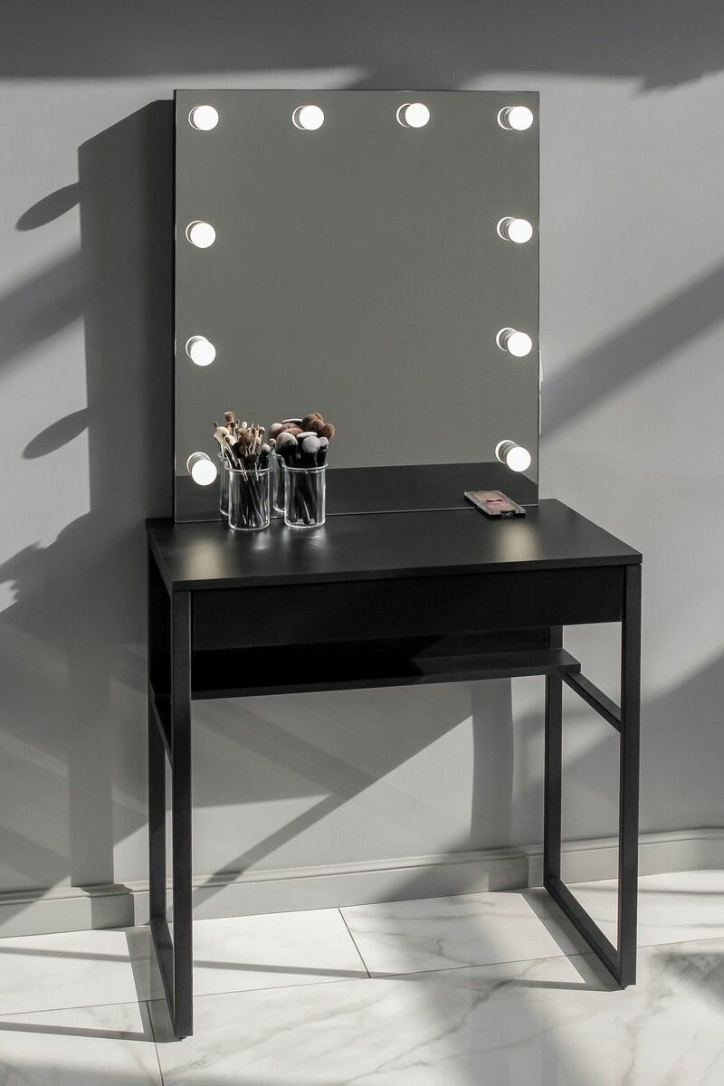 Купить Туалетный столик черный с безрамным зеркалом на металлокаркасе LOFT