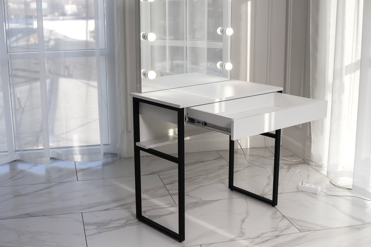 Купить Туалетный столик белый с безрамным зеркалом на металлических ножках LOFT