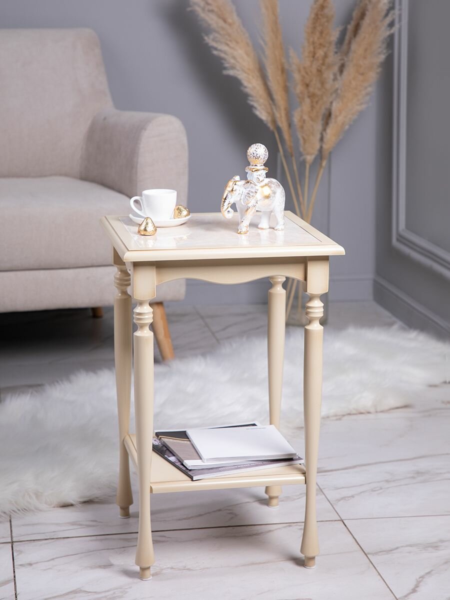 Купить Кофейный квадратный столик Bogacho Оникс со столешницей из керамогранита и фигурными деревянными ножками