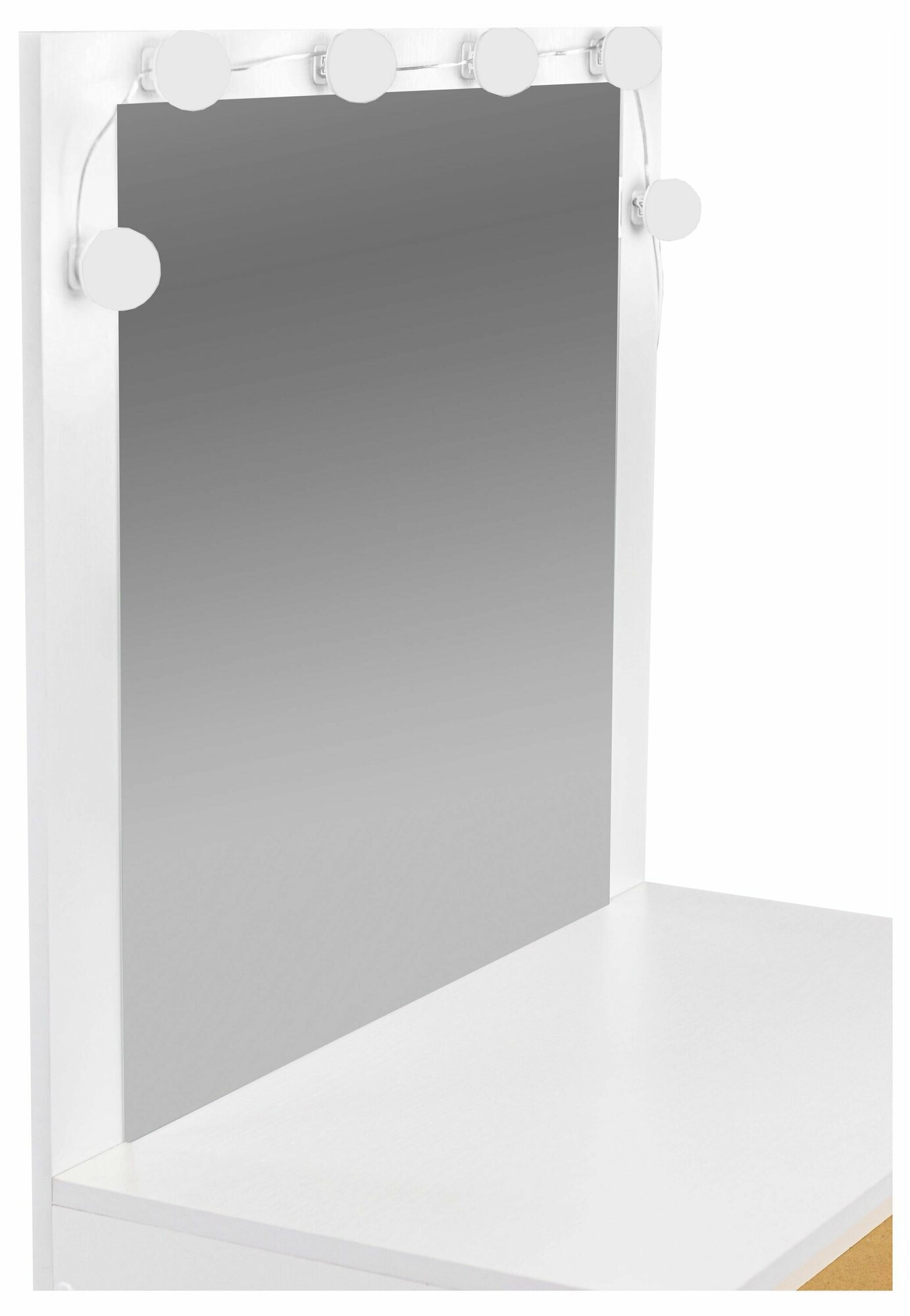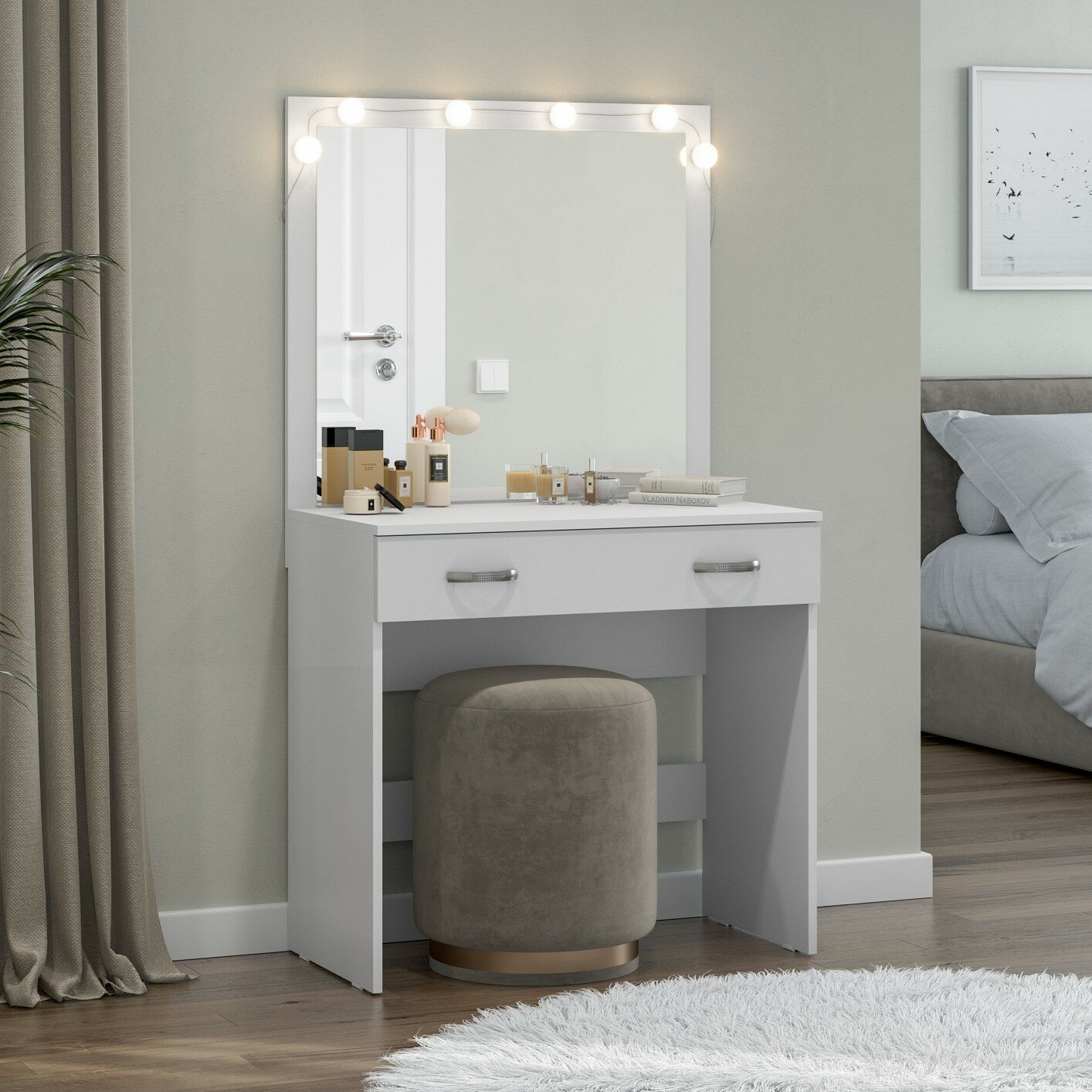 Купить Столик туалетный с зеркалом, выдвижным ящиком и подсветкой (6 ламп) Hesby Ронда белый 144,5*80*43,6см