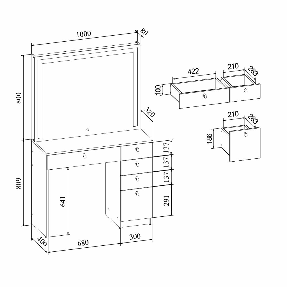 Туалетный столик GRIMSTOL 8ДЕ80-ВА, гримёрное зеркало, LED-подсветка, фасады МДФ, белый, Гранд волна