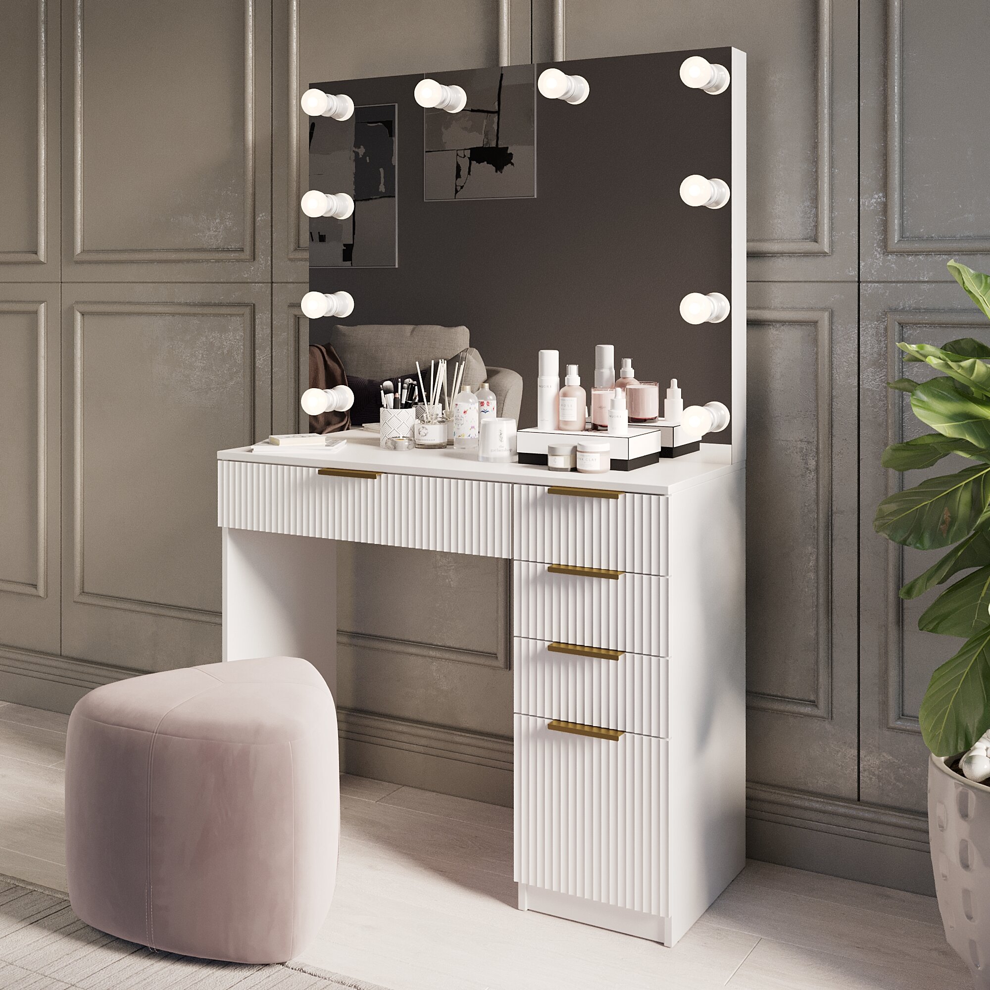 Туалетный столик GRIMSTOL 8Р100-ВА, гримёрное зеркало с лампочками, LED-подсветка, фасады МДФ, белый, Гранд Волна