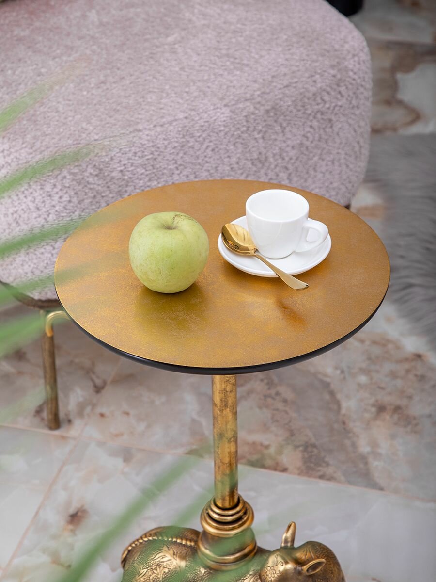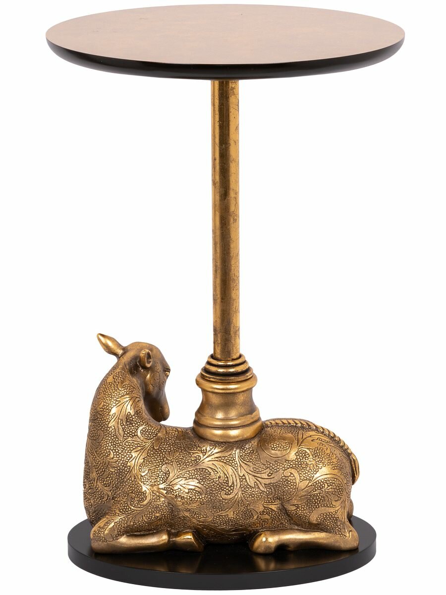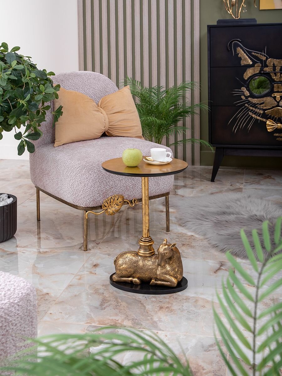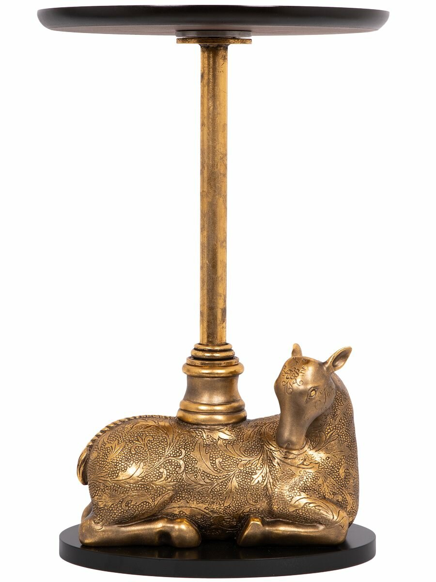 Купить Кофейный круглый столик Bogacho Лань Таори с деревянной столешницей и фигурной металлической ножкой в виде лани
