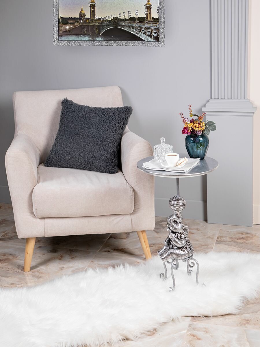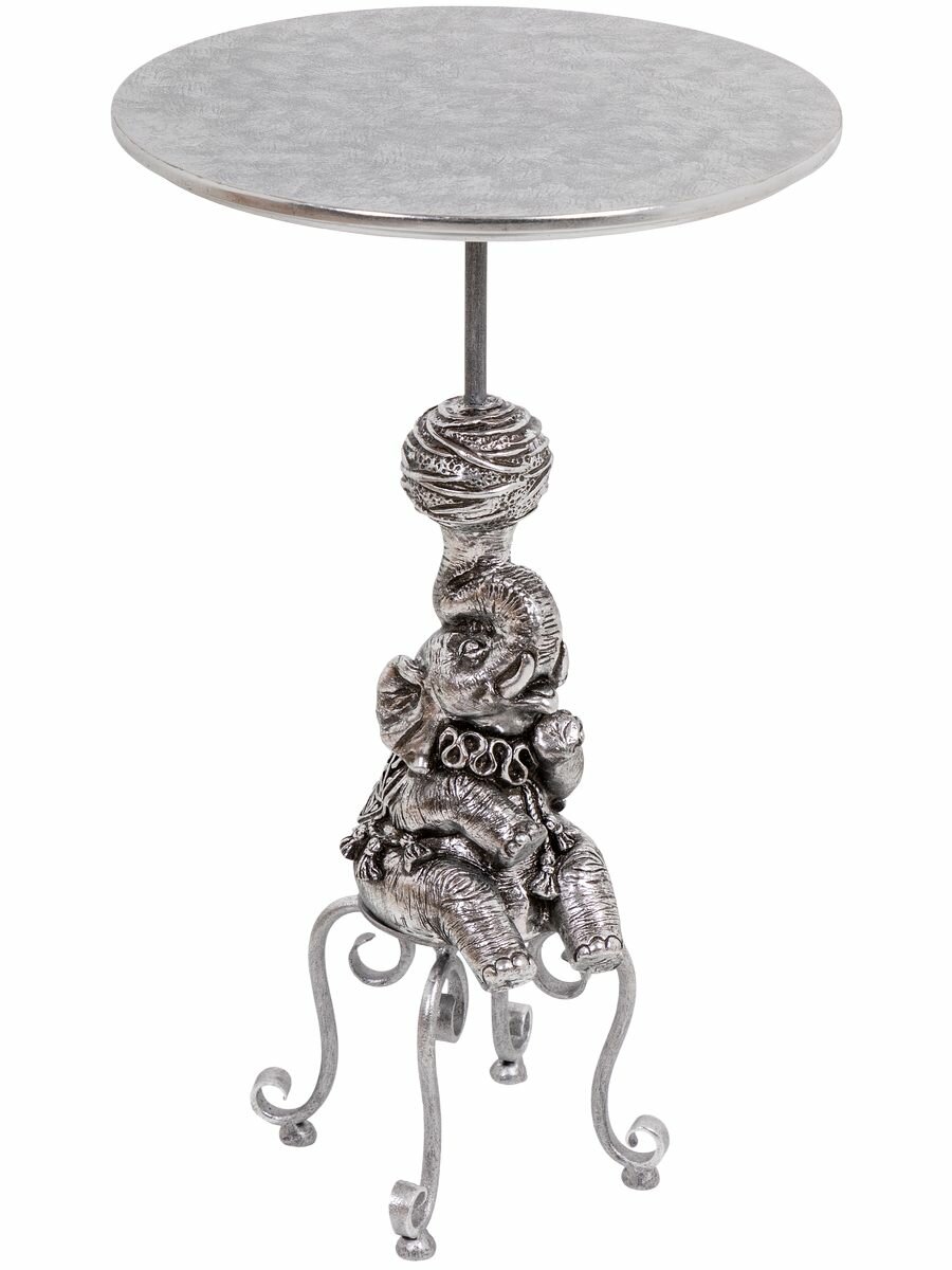 Купить Кофейный круглый столик Bogacho Дю Солей с деревянной столешницей и фигурной мраморной ножкой в виде слона